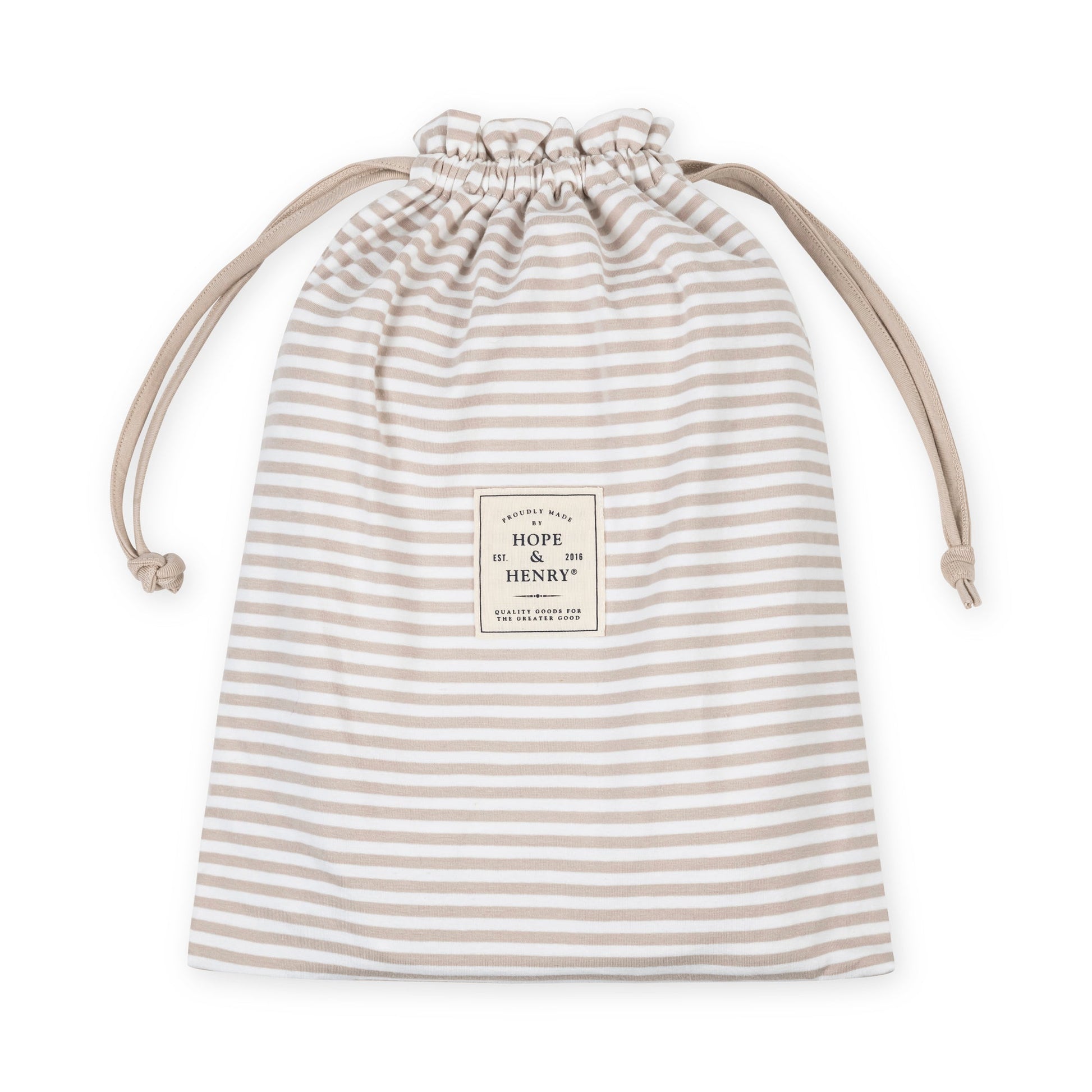 Our adorable 3-piece gift set is the perfect gift for a sweet baby boy or girl! Features a soft organic cotton long sleeve romper with a peter pan collar and snap closure down the center front and legs. Also includes a matching beanie, bib, and a diamond quilted organic cotton blanket. Packaged in a soft coordinating drawstring bag for gift-giving or storage.