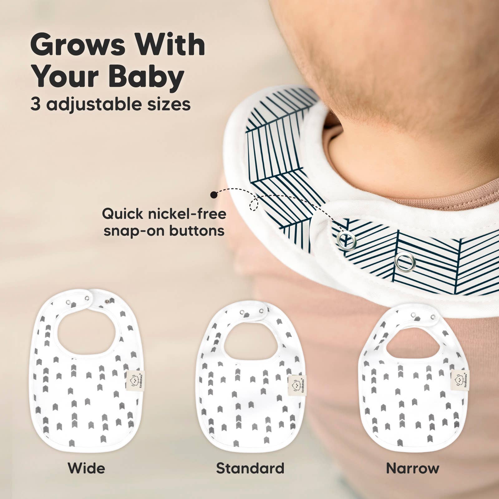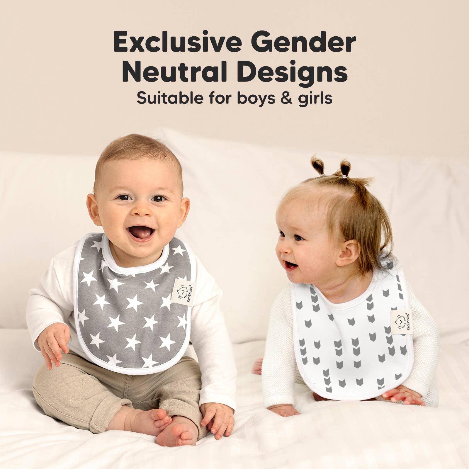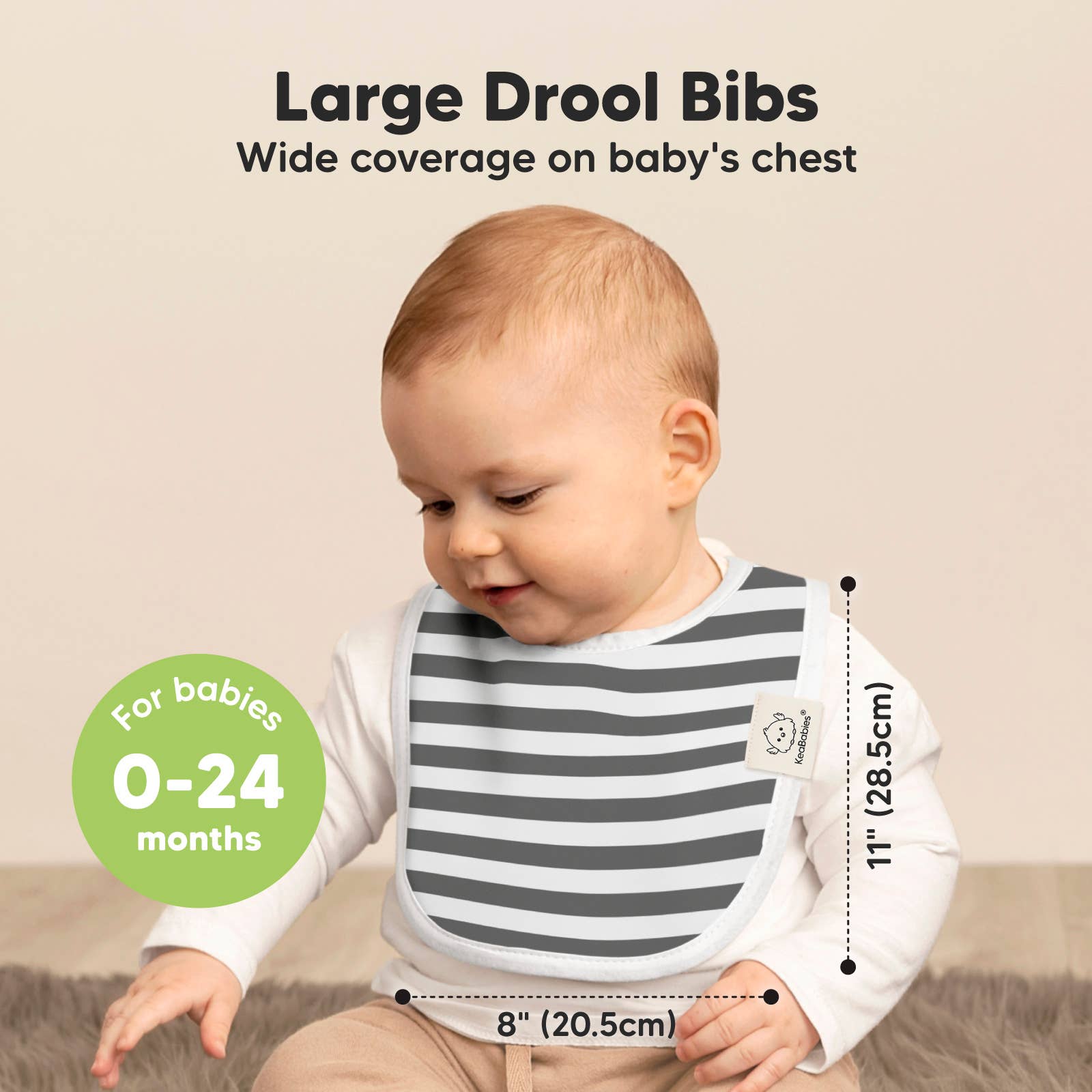 Featuring a dual-layer of GOTS Organic Cotton, our KeaBabies Organic Baby Drool Bibs are made to be extra absorbent and waterproof with soft polyester fleece backing for baby's comfort. Our baby bibs also come with fine-quality stitching that is gentle on delicate skin and the soft bibs allows babies to keep their cool while they drool. Our baby drool bibs come with 3-stage snaps, designed to grow with the baby. Suitable for newborns, infants and toddlers or from 0-24 months. Available in more than 10 designs, the spit ups bibs come in unisex, gender neutral designs or baby boy bibs design and baby girl bibs design. Sold in a 8 pack and comes with a sustainable kraft gift box.