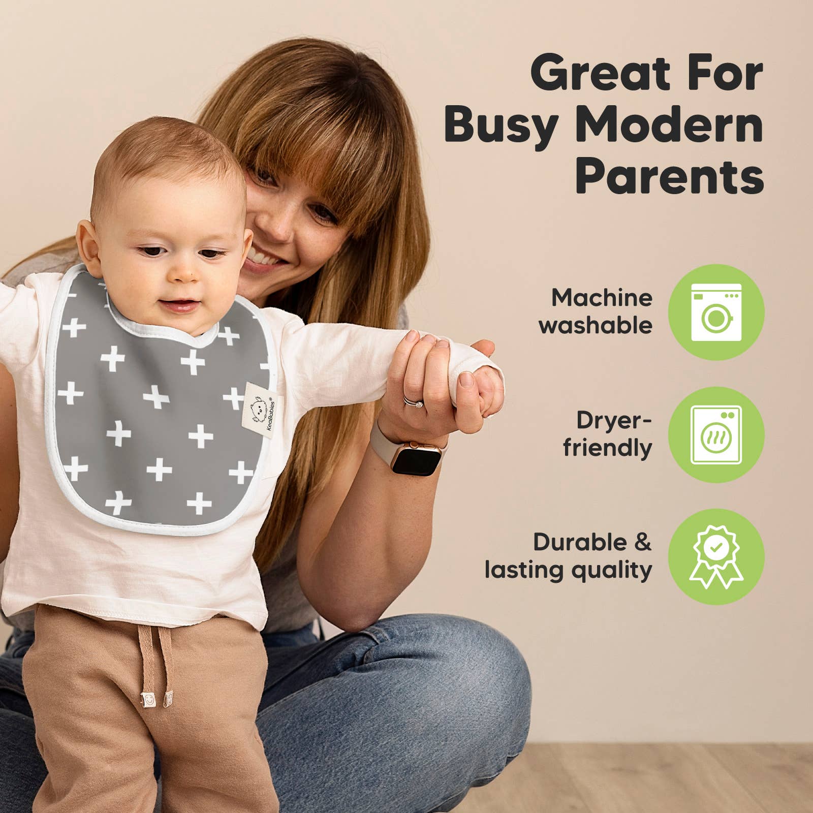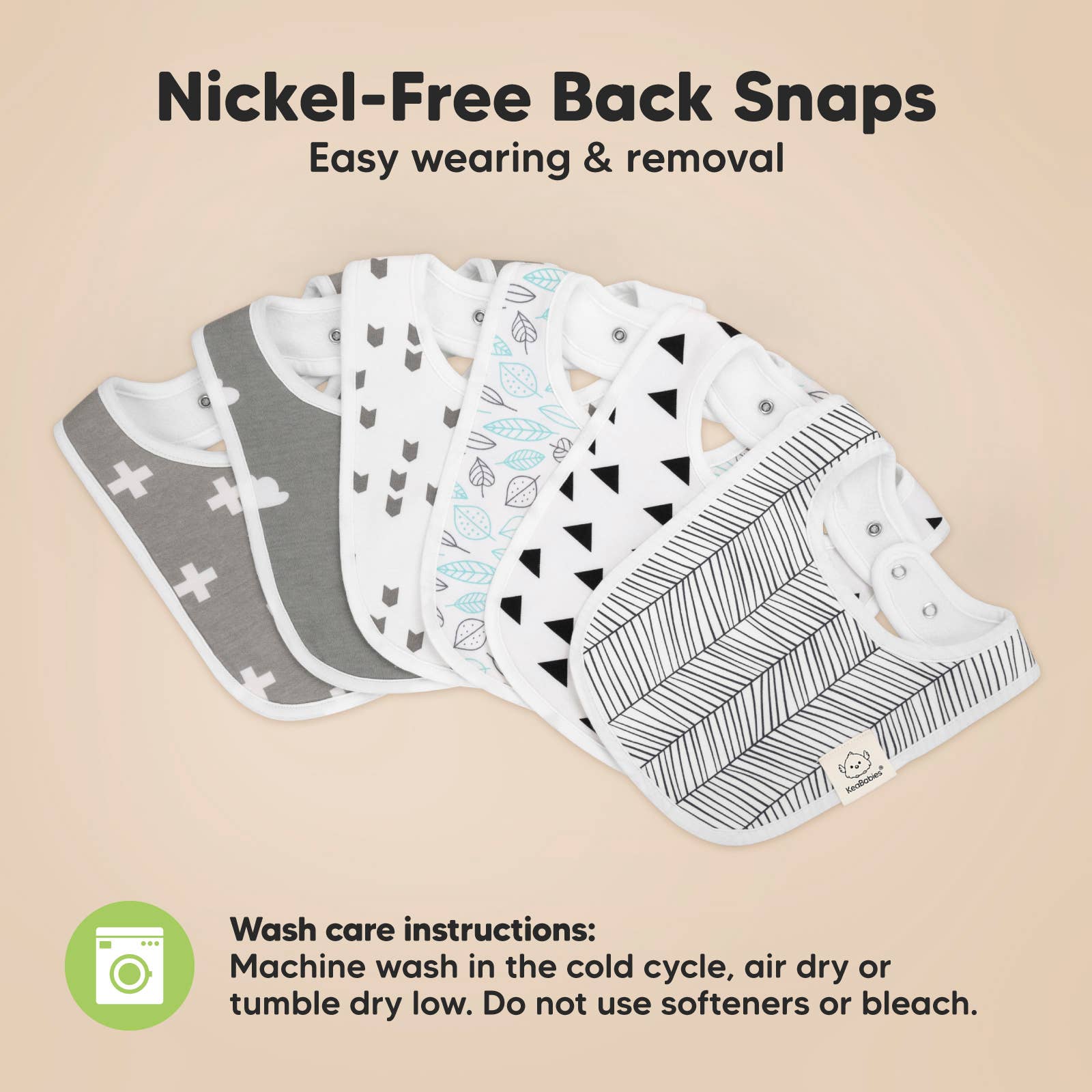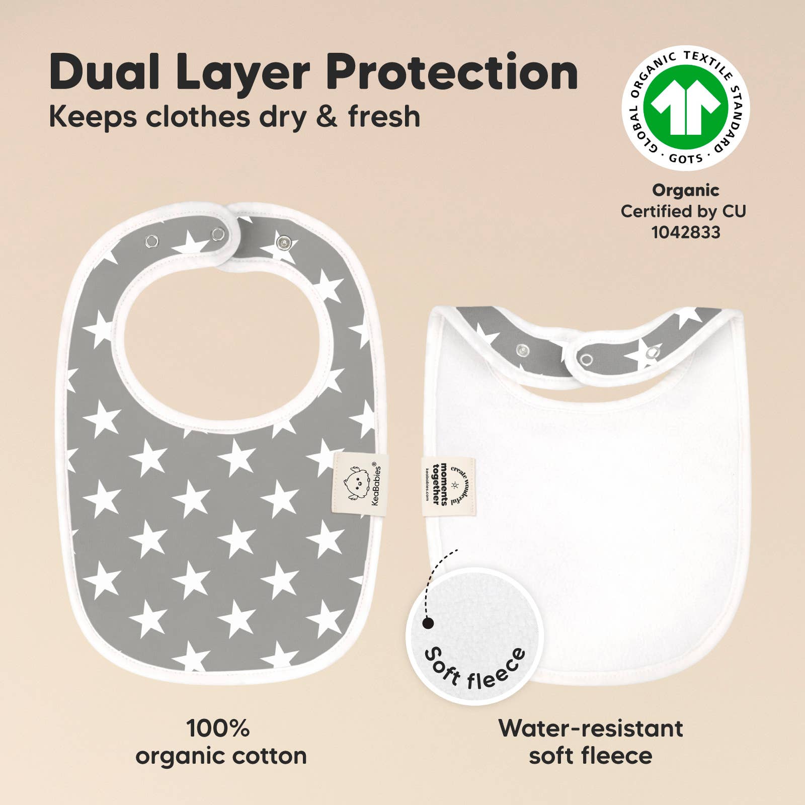 Featuring a dual-layer of GOTS Organic Cotton, our KeaBabies Organic Baby Drool Bibs are made to be extra absorbent and waterproof with soft polyester fleece backing for baby's comfort. Our baby bibs also come with fine-quality stitching that is gentle on delicate skin and the soft bibs allows babies to keep their cool while they drool. Our baby drool bibs come with 3-stage snaps, designed to grow with the baby. Suitable for newborns, infants and toddlers or from 0-24 months. Available in more than 10 designs, the spit ups bibs come in unisex, gender neutral designs or baby boy bibs design and baby girl bibs design. Sold in a 8 pack and comes with a sustainable kraft gift box.