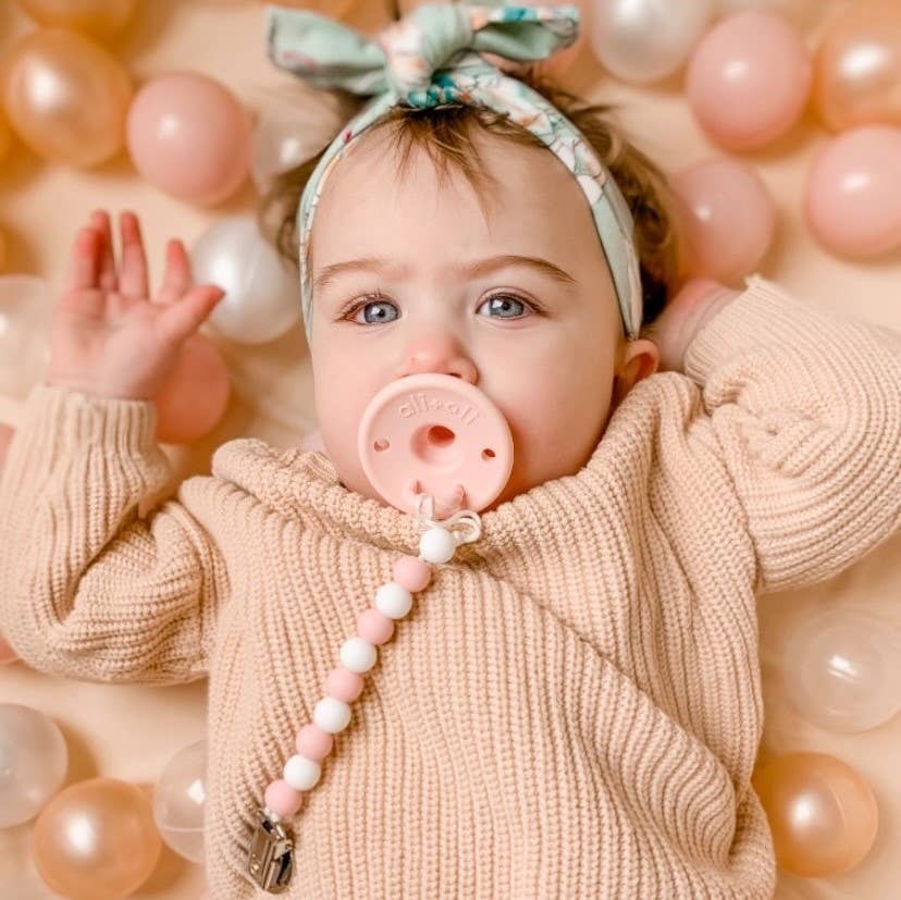 Ali+Oli Silicone Pacifier Clip (Pink-White)