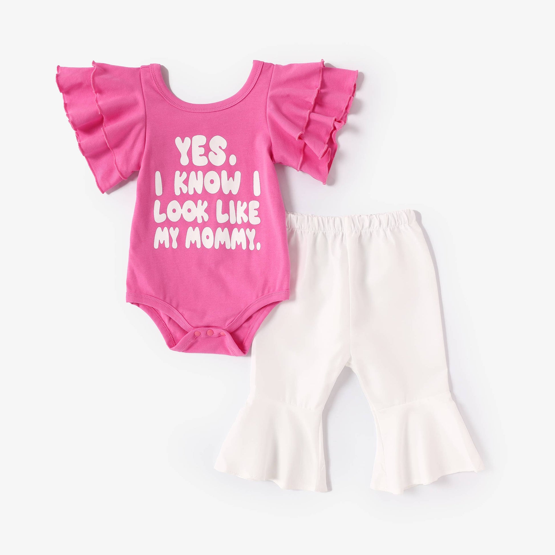 Baby Girl 2pcs Sweet Letter Print Romper and Flared Pants