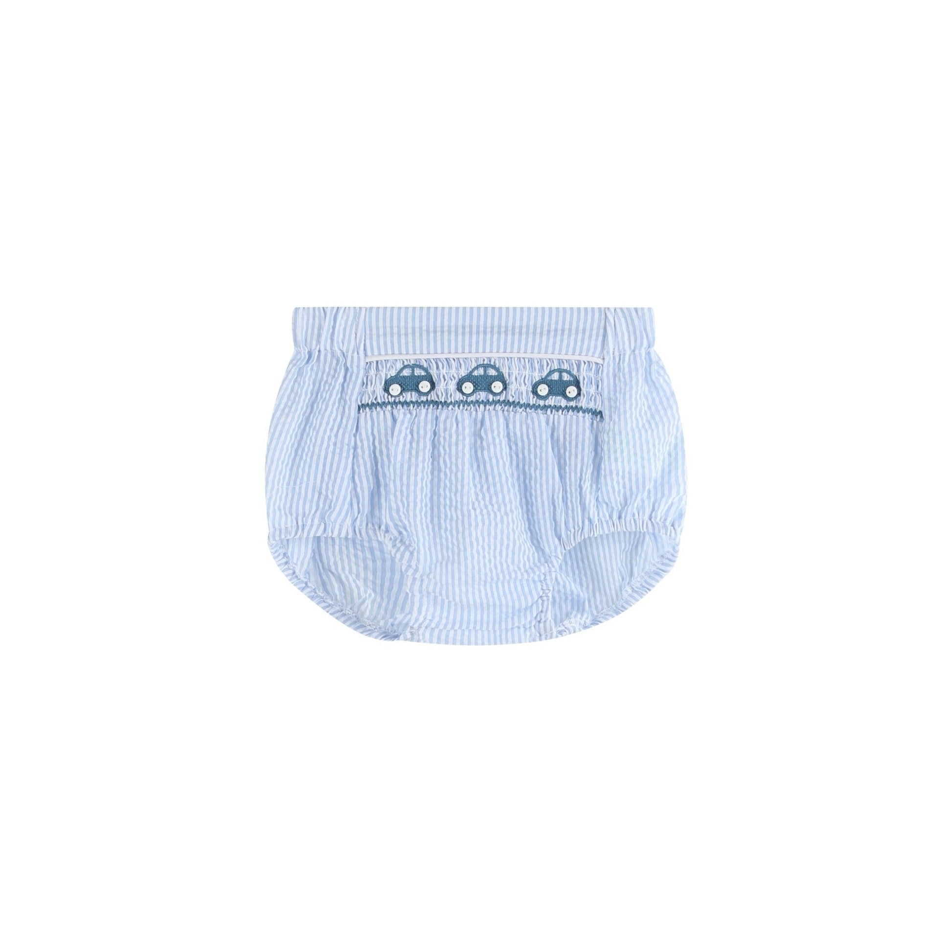 These adorable blue-smocked bloomers, by Lil Cactus, are a staple for any little sweetie's closet. Detailed with adorable car embroidery and buttons as wheels these little bloomers will pair well with any outfit. A perfect mix of cute and cool, these bloomers will get make sure your little one is ready to race around!