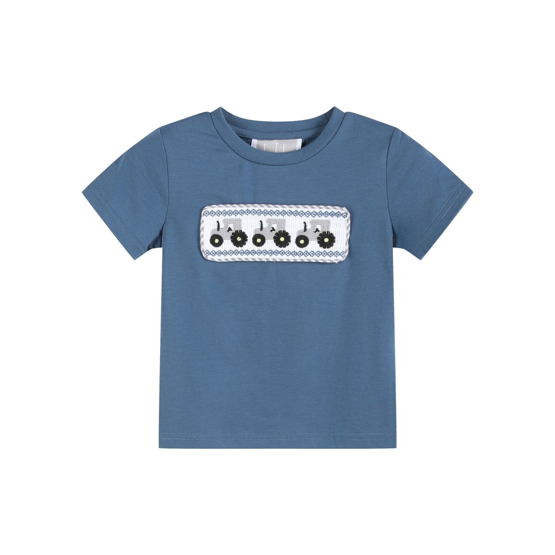 Blue Tractor Smocked Shirt and Gray Shorts Set