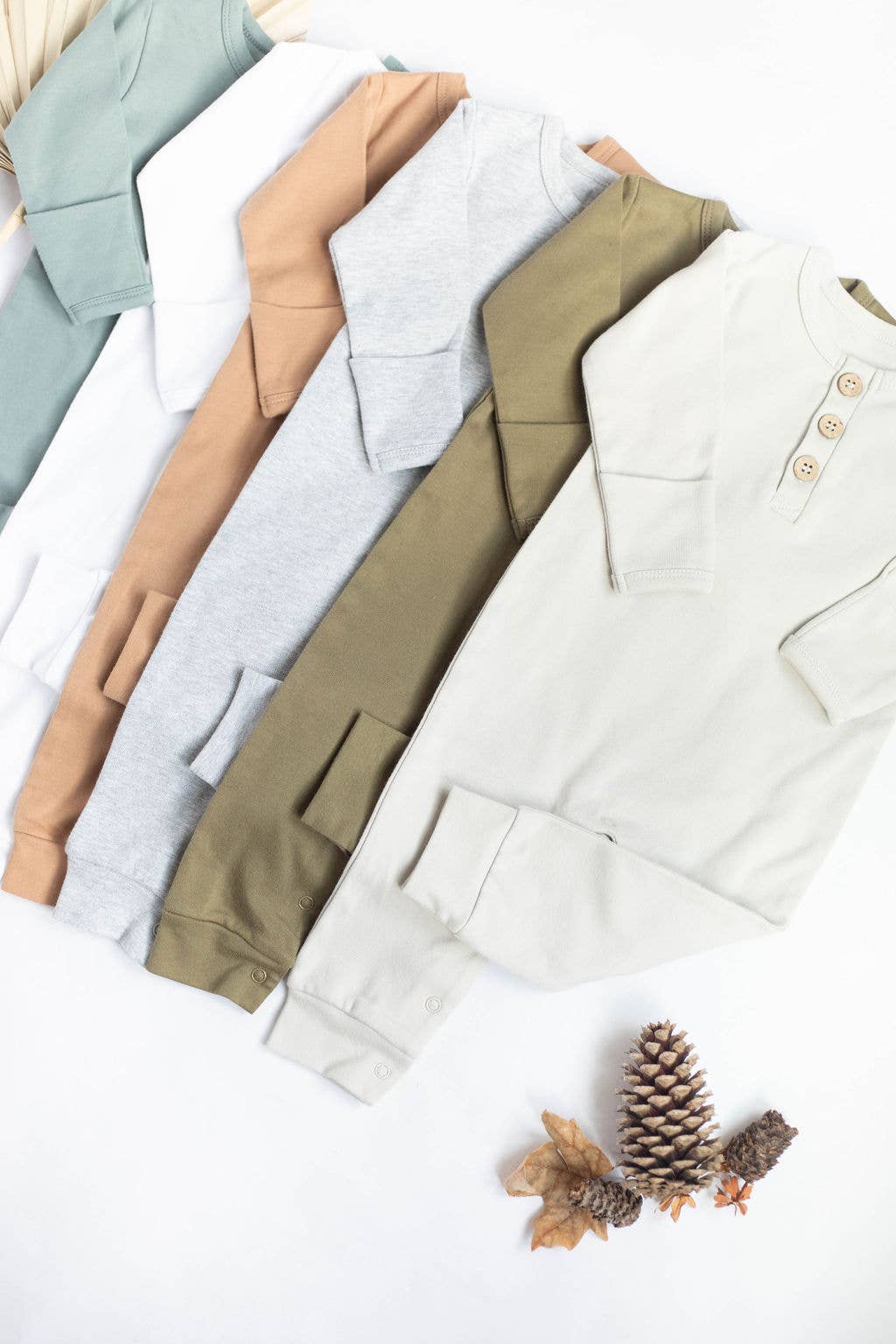 Buttoned Organic cotton baby romper with snaps L/S unisex