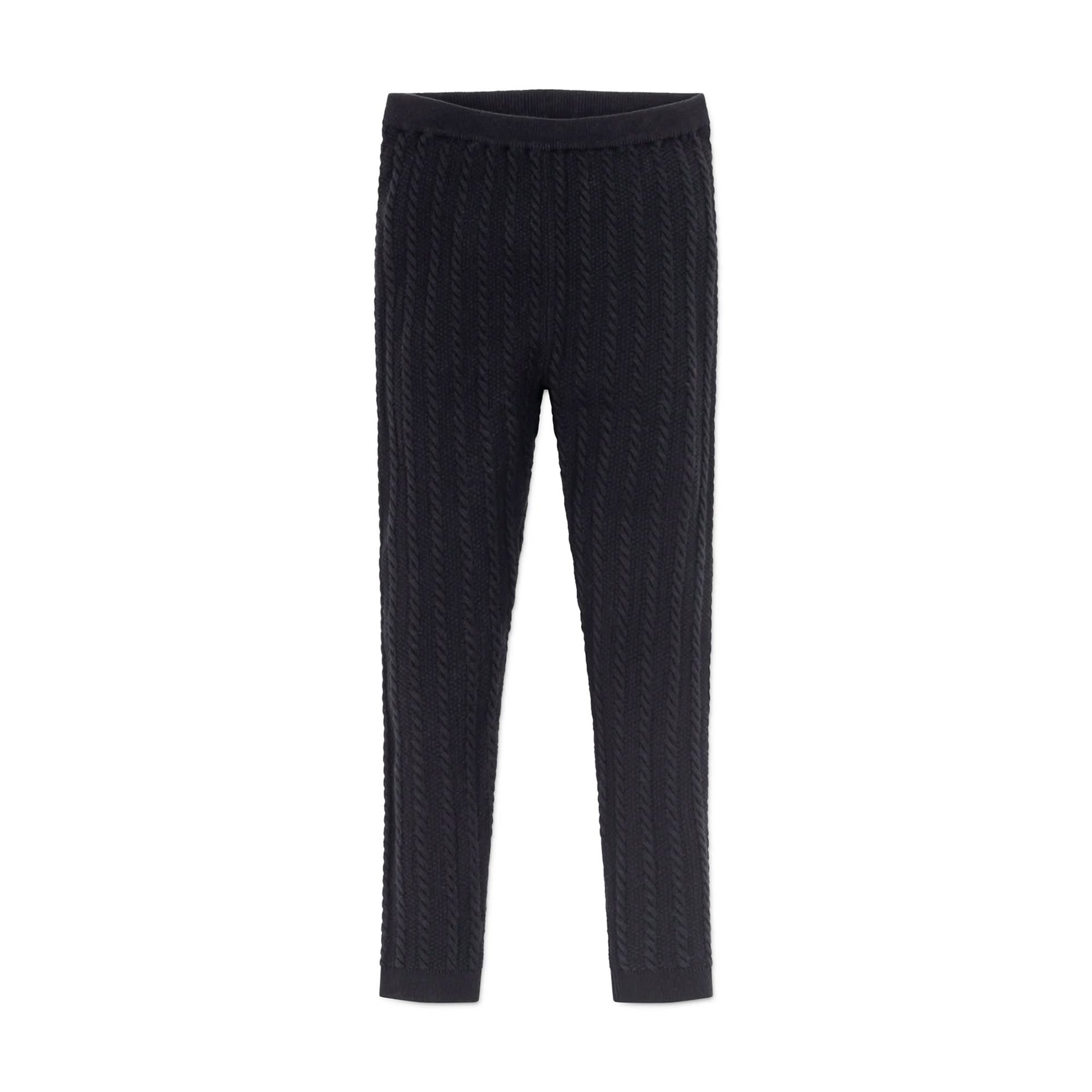 It doesn't get much cozier than our pull-on cable knit sweater legging in a soft and stretchy organic cotton blend. Features a beautiful all over cable knit design that layers perfectly under one of our fantastic skirts, dresses, or shorts for a cute look on a cold day. An essential to your girl's fall and winter wardrobe.