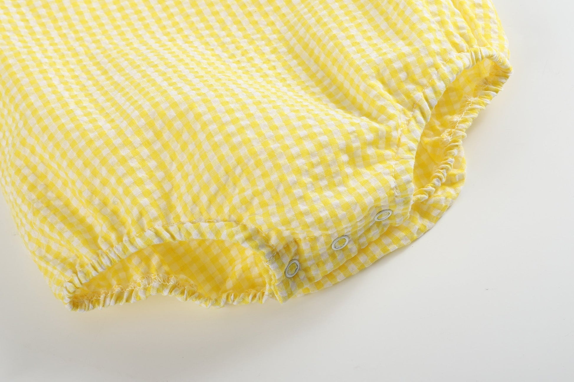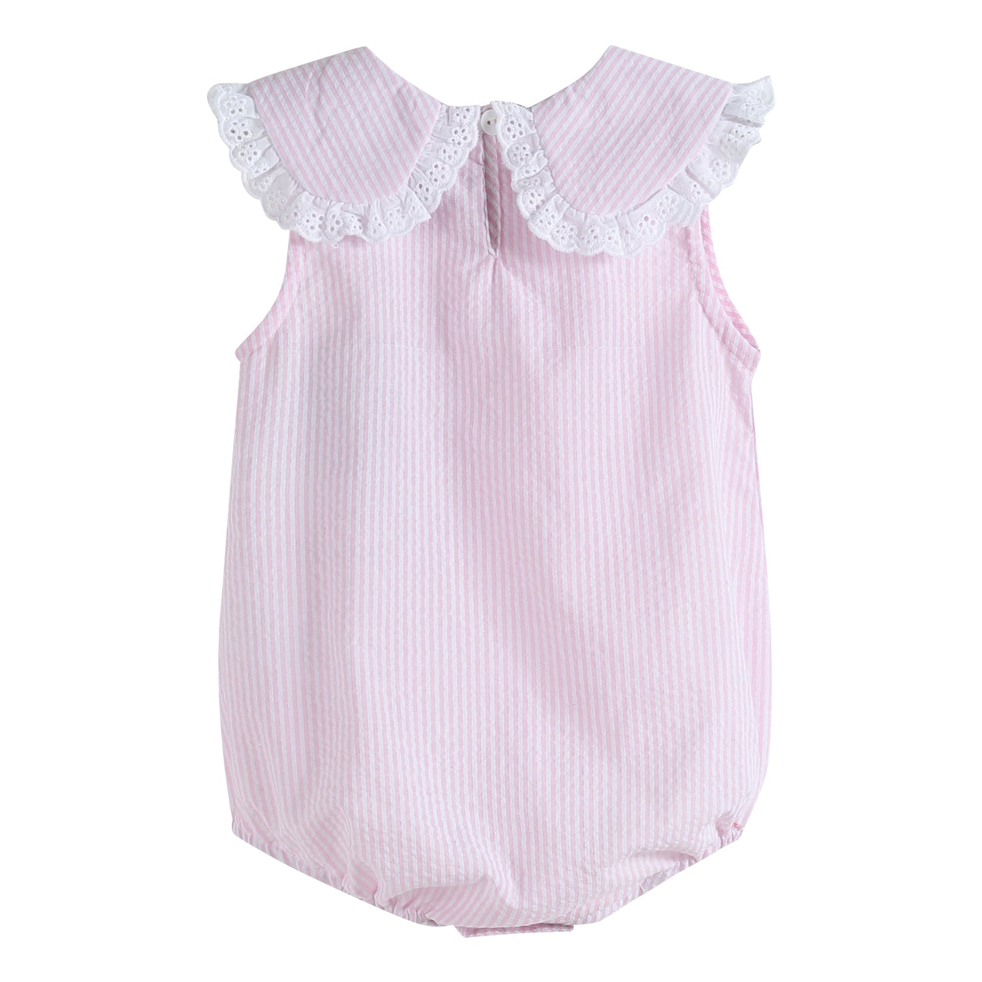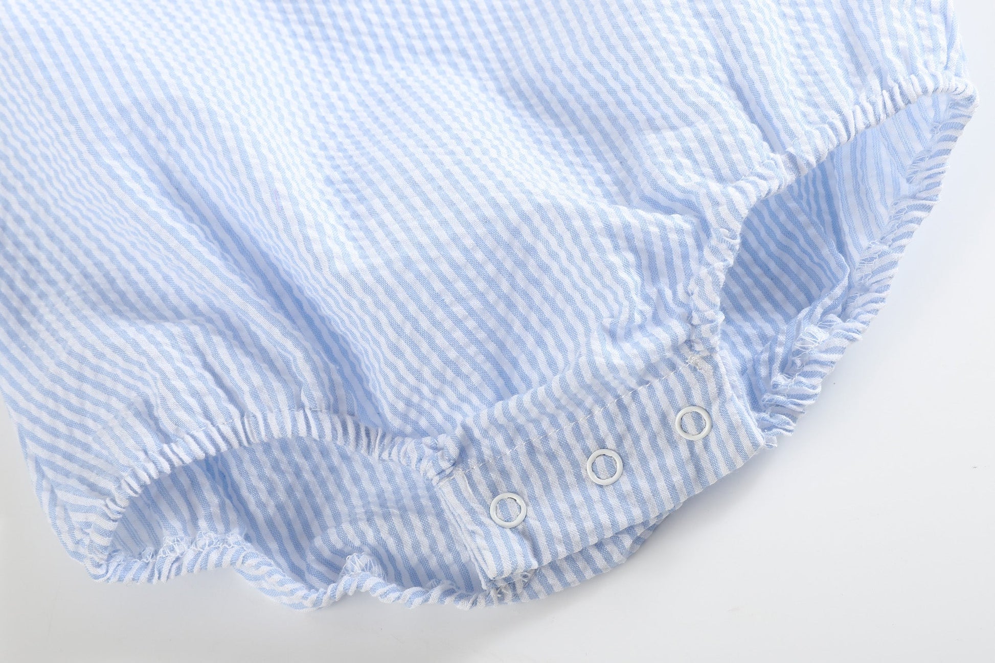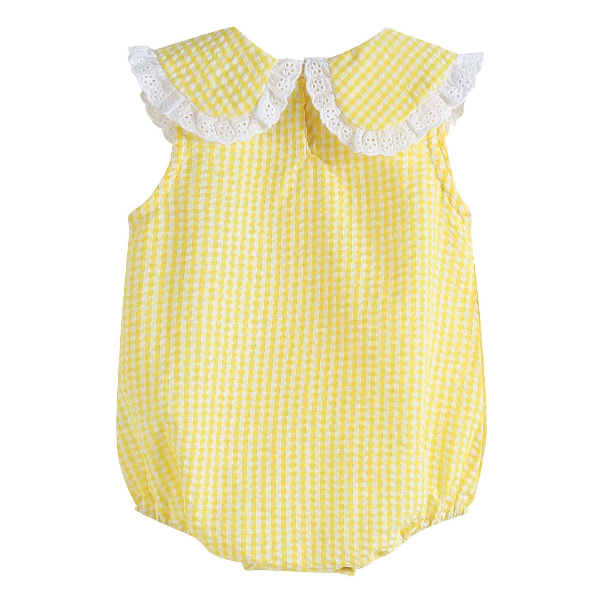 Make your little one look as cute as a button in this pretty and sweet collared bubble romper! Adorned with delicate lace trim, this affordable and adorable onesie is the picture-perfect warm-weather outfit that is a must-have this season.