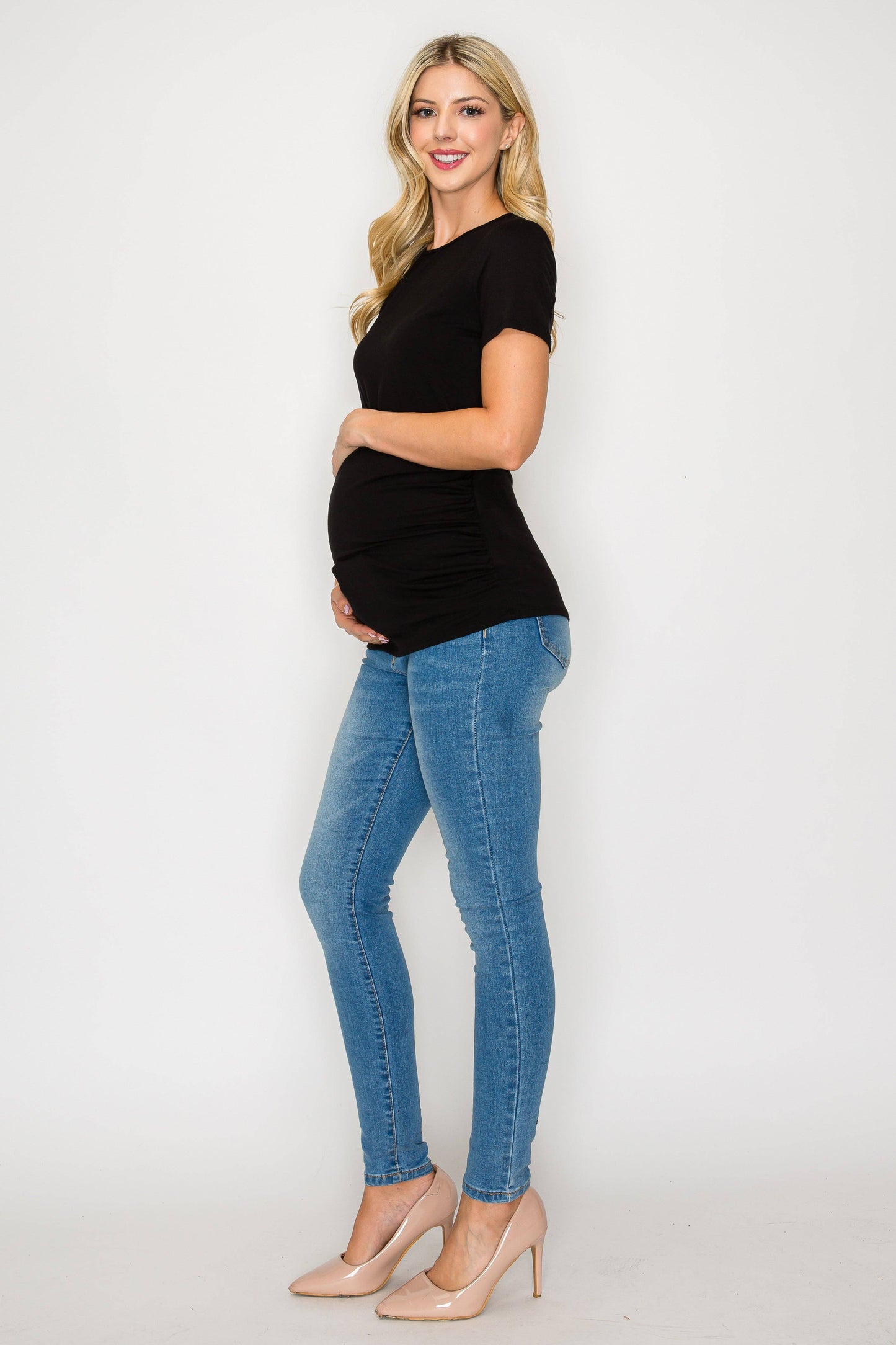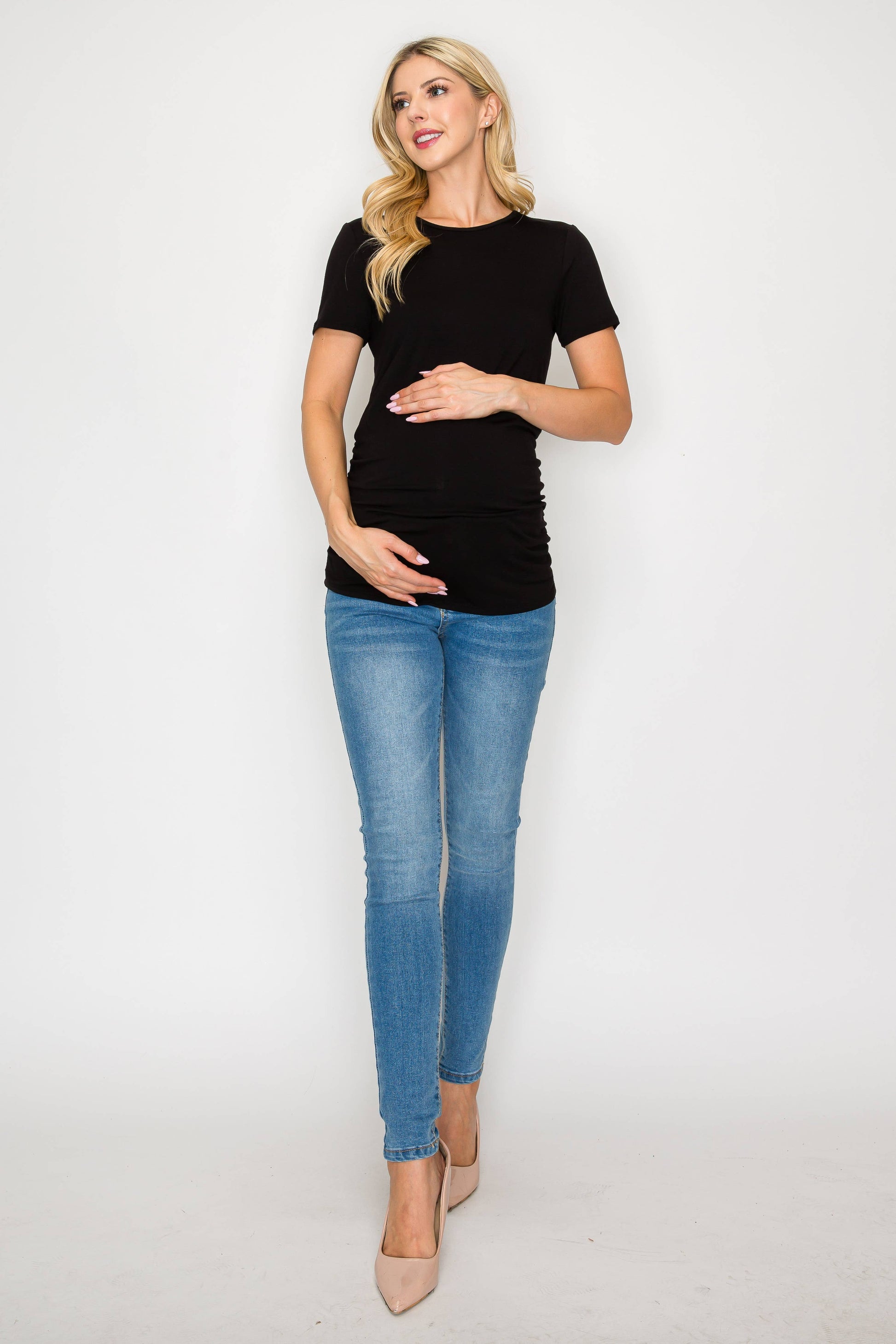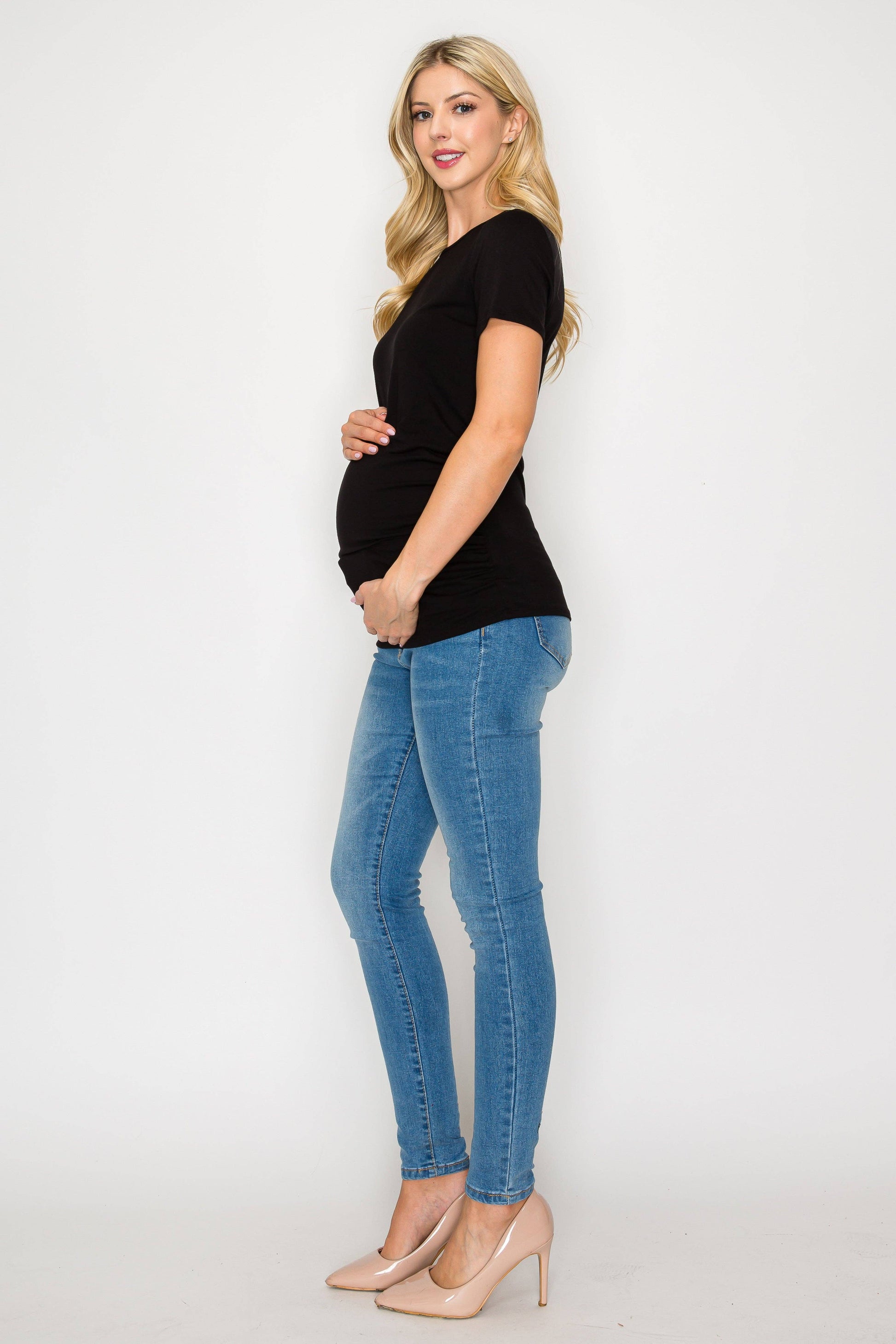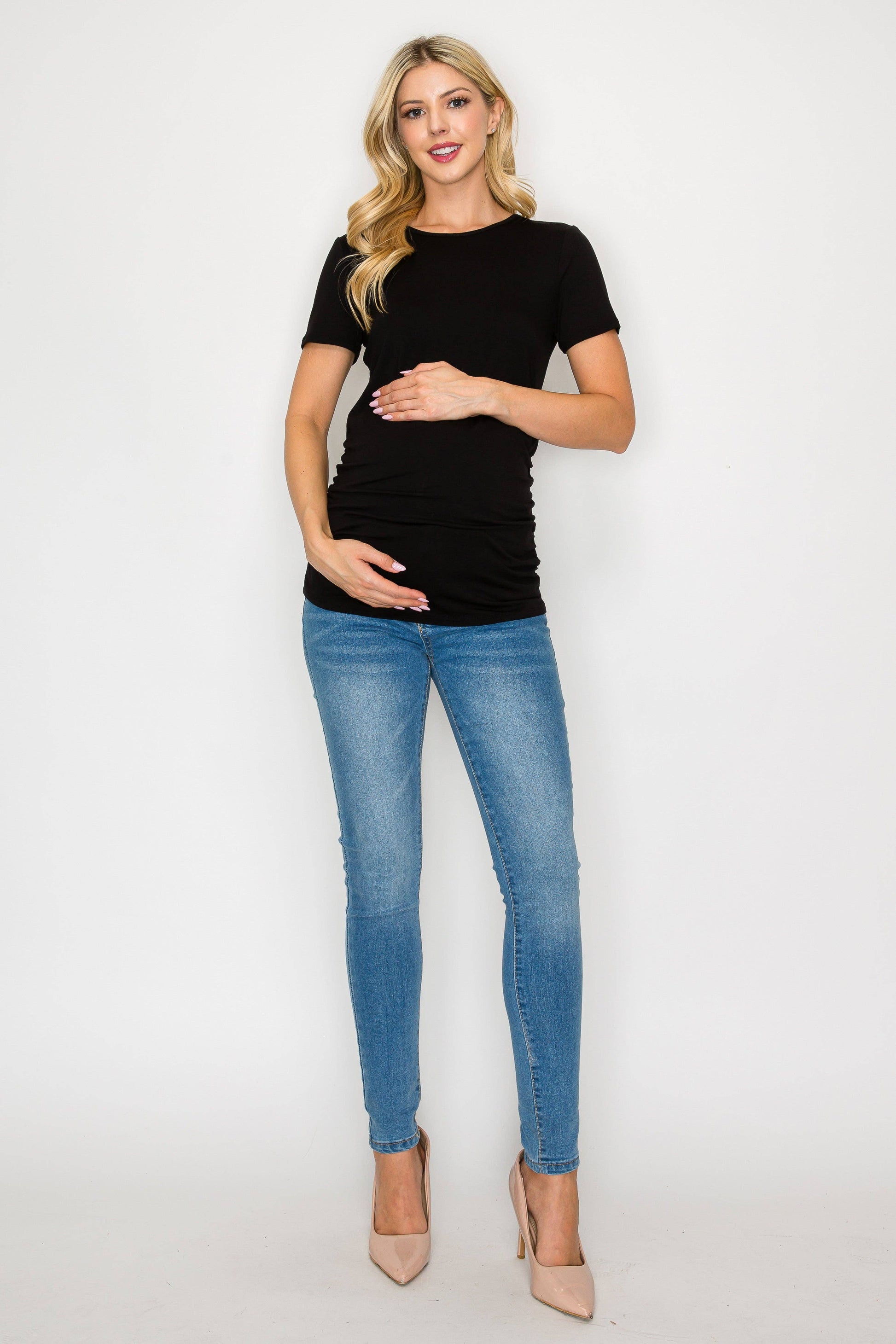 The Elisse Casual Short Sleeve Top W/Side Ruched is constructed of comfortable rayon that is stretchy, light, and breathable. Comfortable for any pregnant mama to wear all day long for any occasion. Specially designed for a comfortable daily wear. This top is loose enough around your bump making it comfortable to move in. Can be easily dressed up or down. You can wear this top to any occasion such as going to work, running errands, or when dining out.