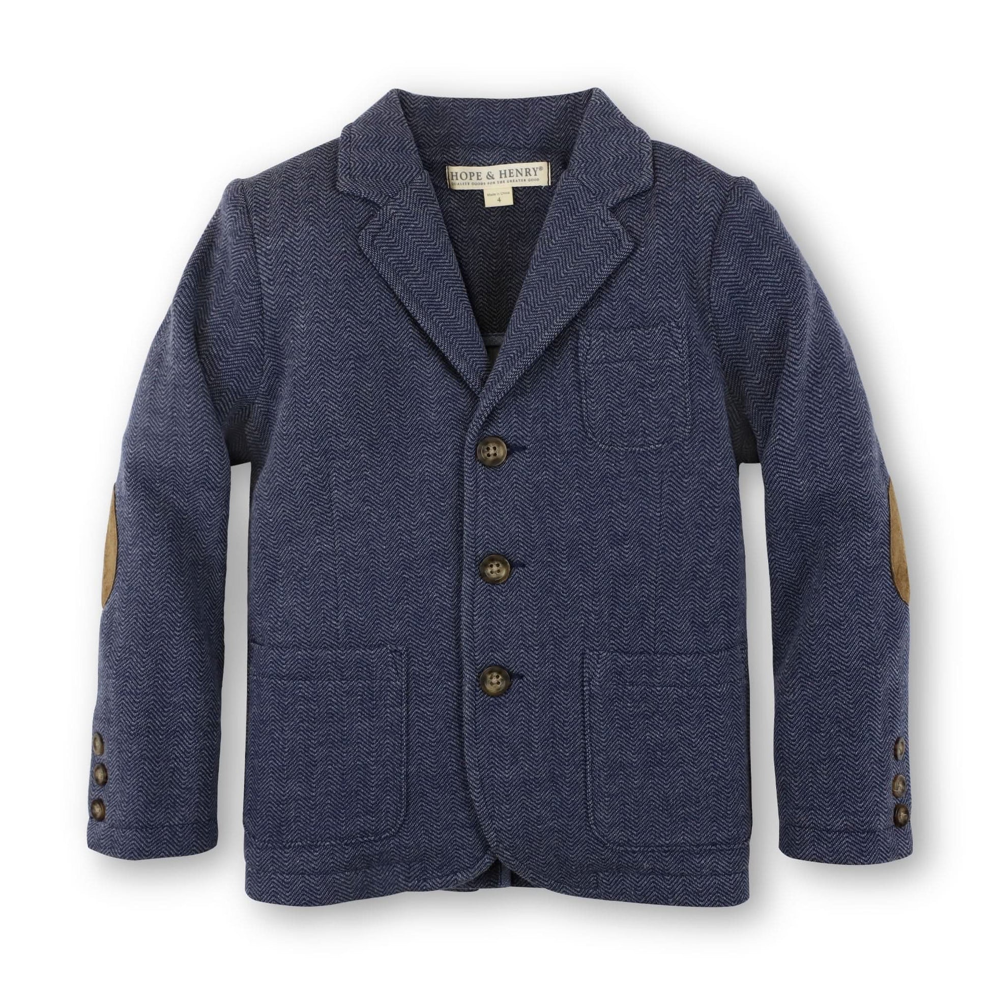 Our tailored knit blazer in soft jacquard fleece pairs comfort with picture-perfect style. Features classic styling, faux horn buttons, front patch pockets, and faux suede elbow patches. A dressy look he will love to wear.