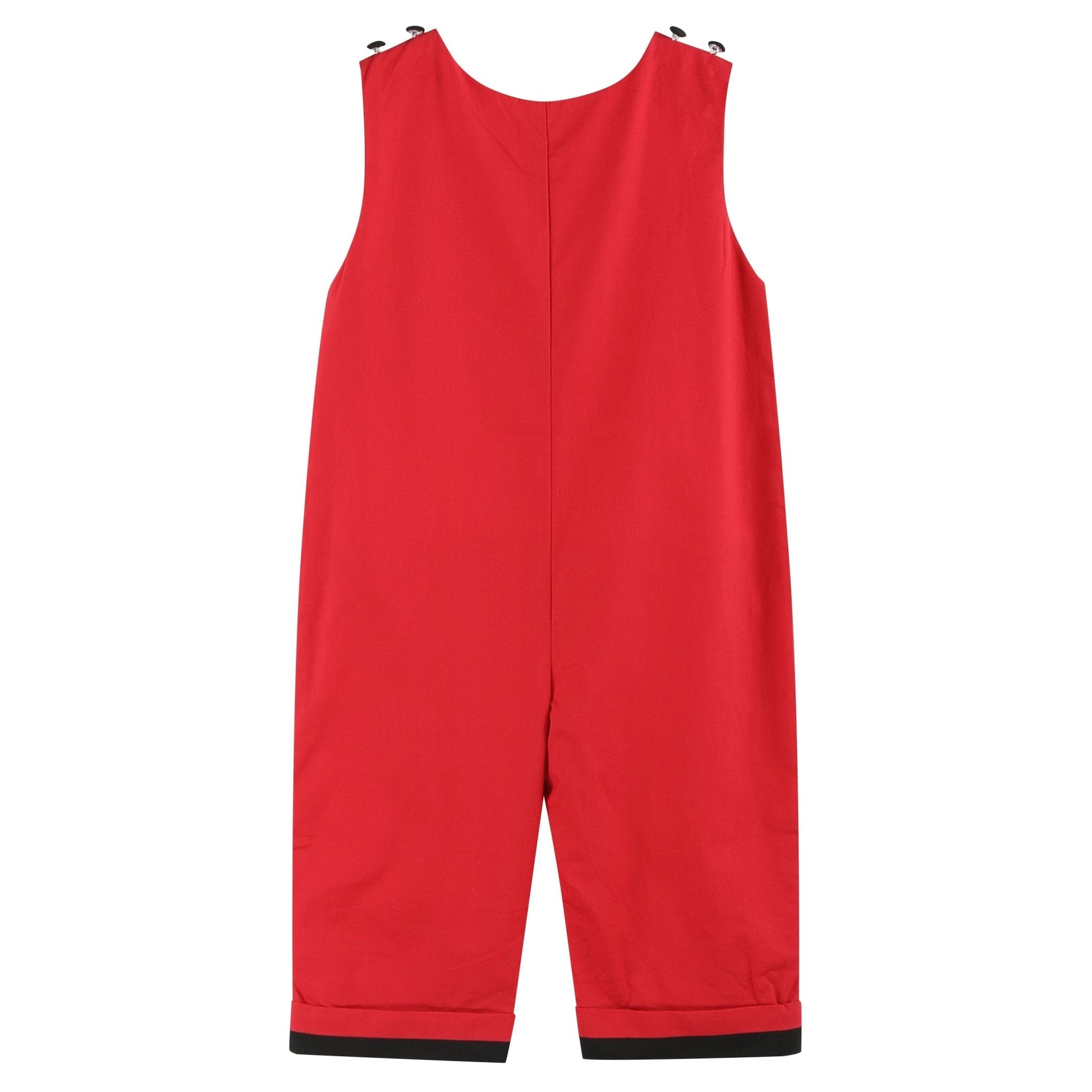 Gear up for game day with our Georgia Fan Overalls! Featuring a spirited appliqué bulldog, these football-themed overalls are perfect for your little one to show off team pride. Let your little fan join the excitement and cheer on with style.