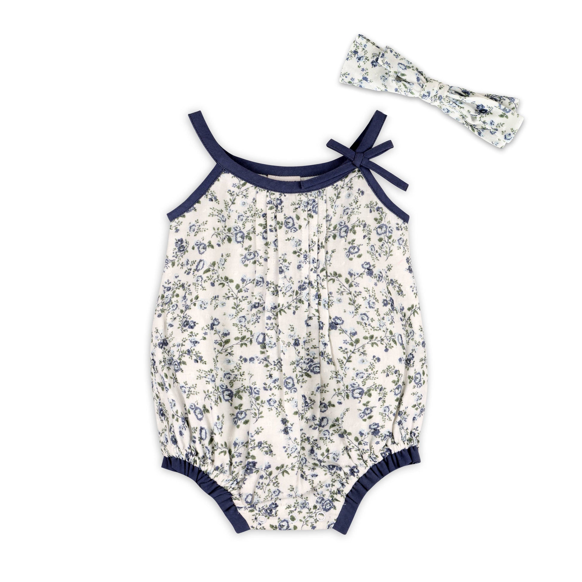 Gia Floral Muslin Baby Romper + Headband (Organic Cotton)