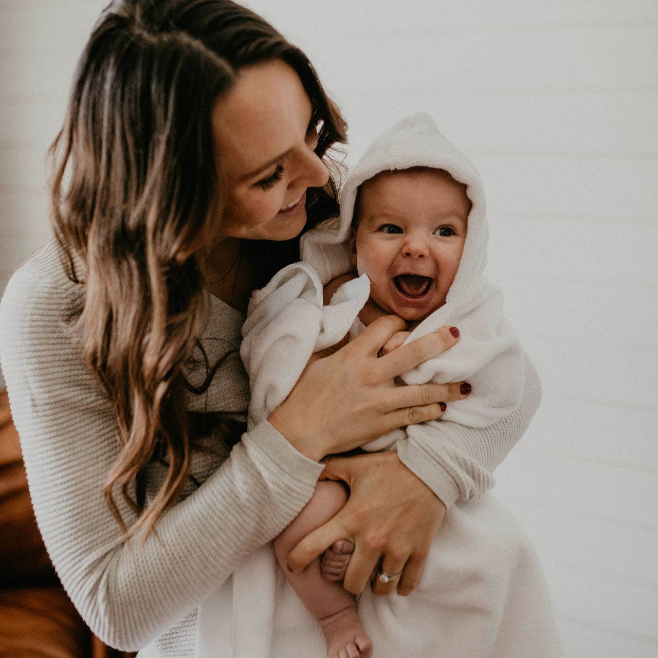 Our towels are thicker and more absorbent than typical baby towels. Soft to the touch, they are ideal for sensitive skin. Babies stay warm and insulated after bath time. Available in 2 sizes, our towels grow with families and become a bath time favorite. The centered hood creates the perfect swaddle or superhero cape. Fast-drying and durable.