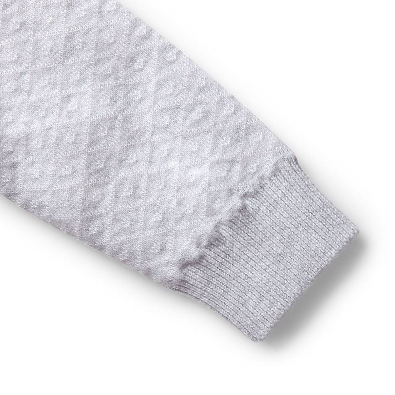 An intricate diamond pattern sets this sweater romper apart from the rest. Its double jacquard construction features an allover pattern in reverse colors, adding interest to both the inside and outside of the garment. Dressing baby is easy with a center front button closure. Pair with our matching jacquard blanket for the perfect gift!