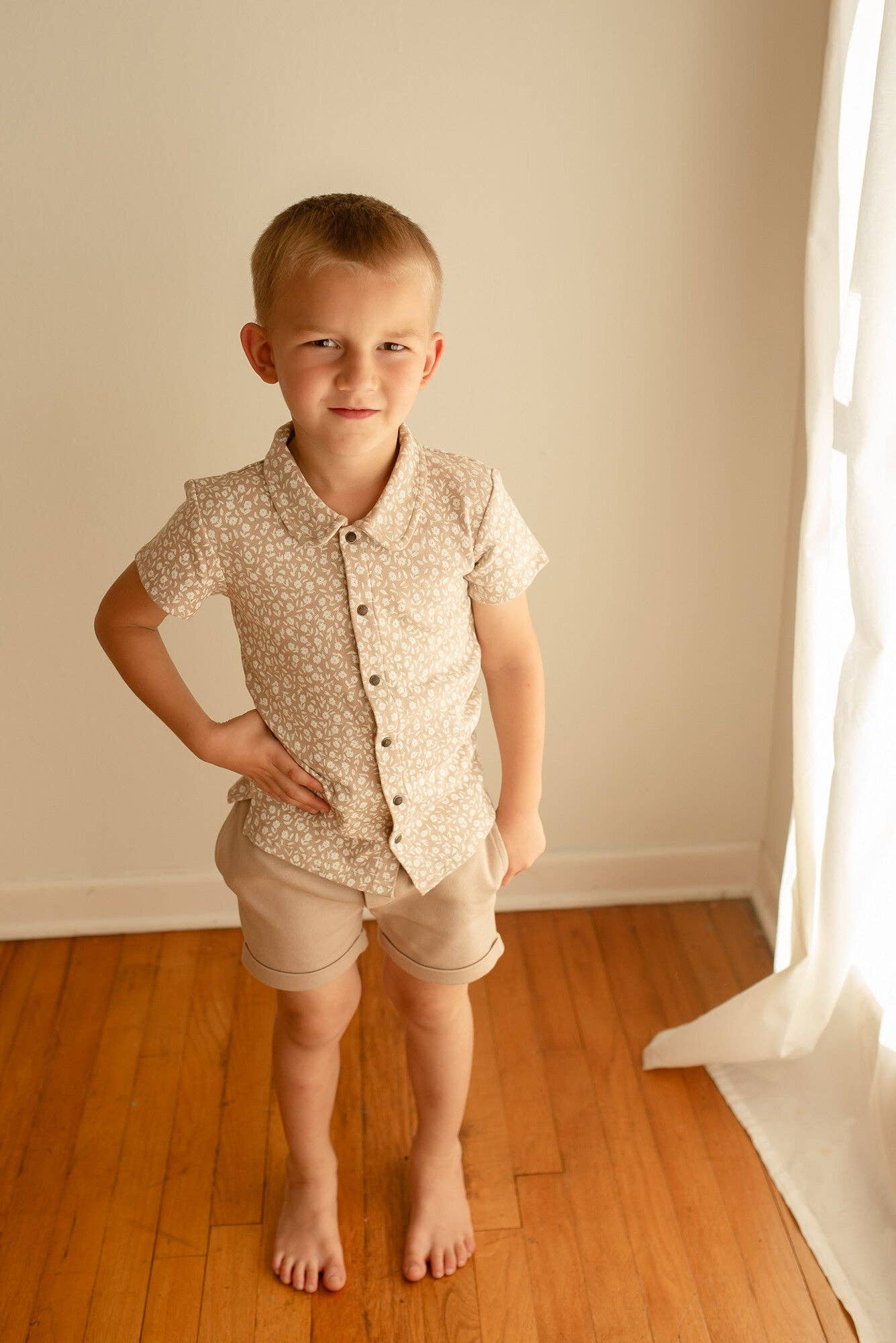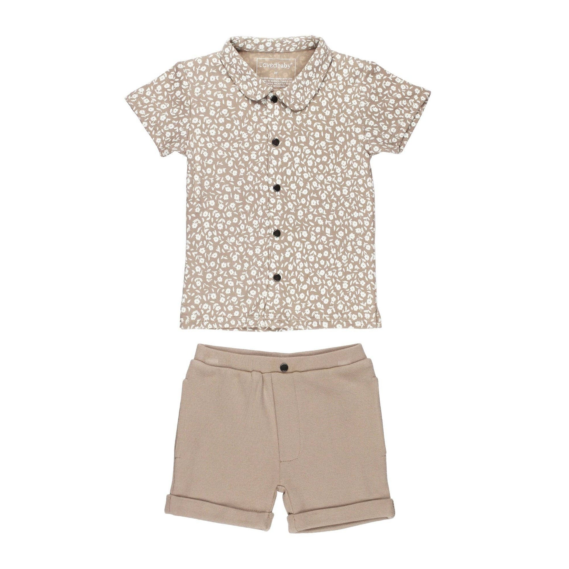 Kids' Organic Button-Up Shirt & Shorts Set in Oatmeal Ditsy Floral