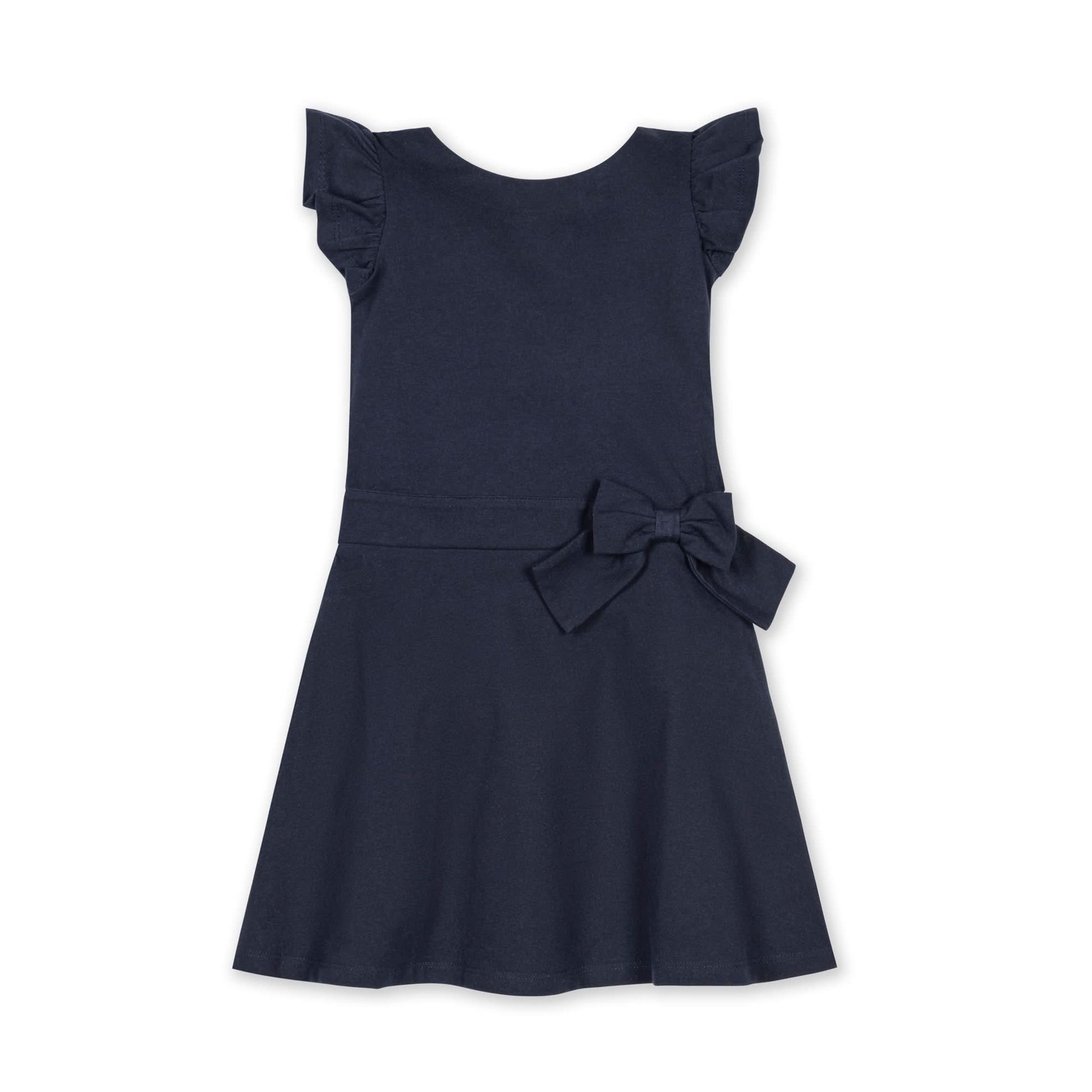 Between the stretchy-soft organic cotton jersey, twirly full circle skirt, and cute ruffle pinafore detail, this dress is sure to become an instant staple in your girl's closet. Perfect for everything from picture time to play time!