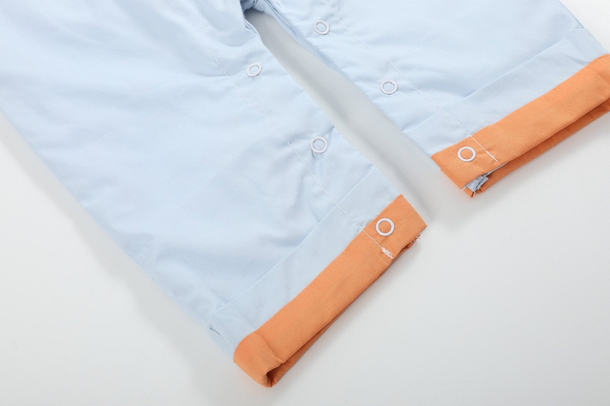 Pumpkin-tastic! These Light Blue Pumpkin Applique Overalls by Lil Cactus are perfect for Fall, Halloween, and Thanksgiving celebrations. Featuring adorable pumpkin appliqué and snap enclosures for easy diaper changes, they’re ideal for cozy fall adventures and trips to the pumpkin patch. Made from soft, breathable cotton, these overalls ensure your little guy stays comfortable and stylish. Available in sizes up to 2T, they’re a charming addition to any fall wardrobe. Perfect for family gatherings, festive outings, and creating picture-perfect moments!