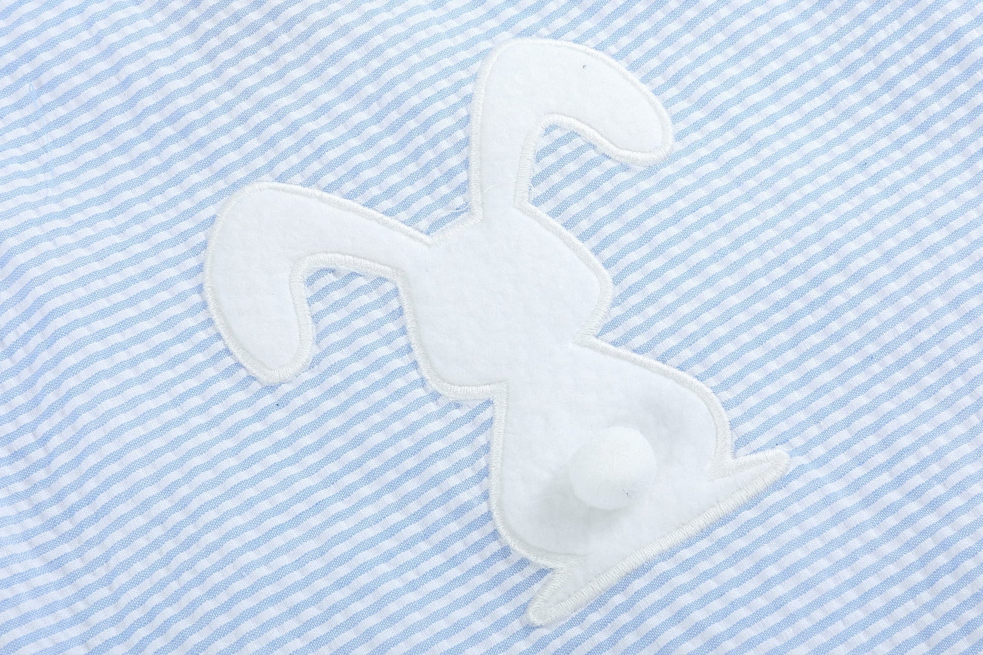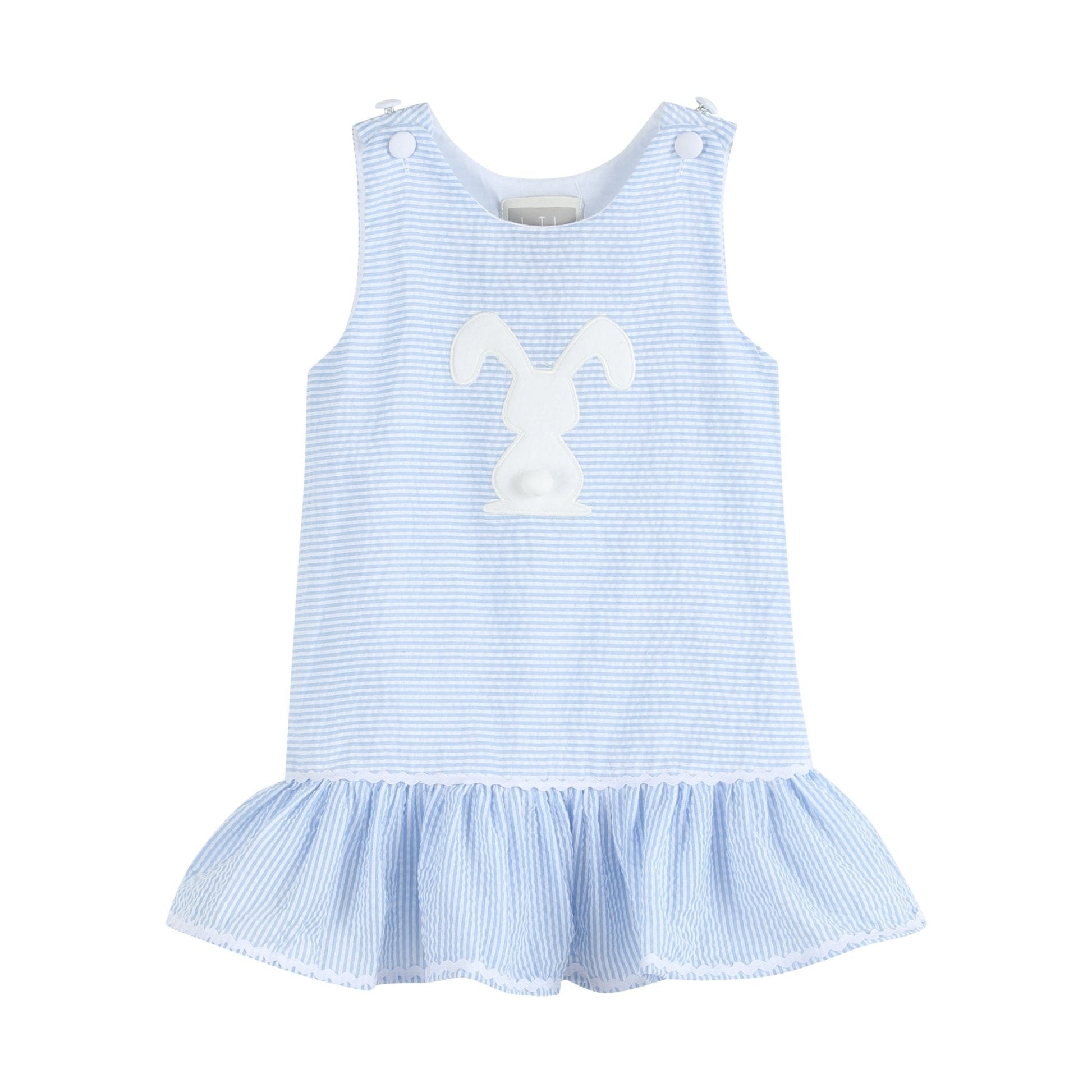 Light Blue Seersucker Pom Pom Bunny Swing Dress