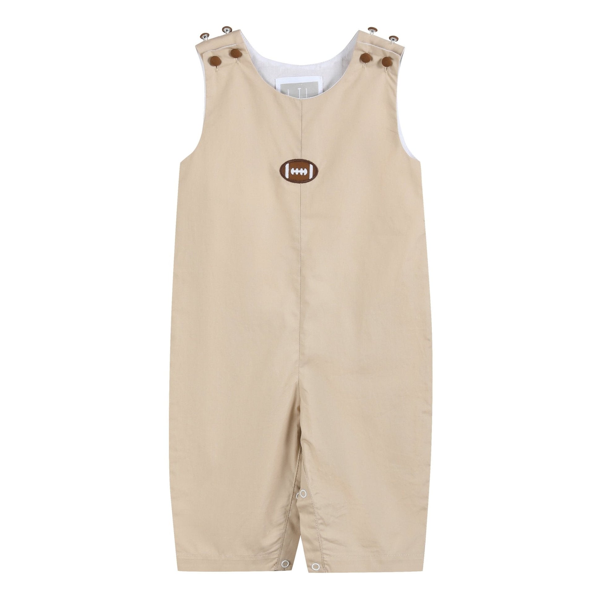 Get your little one ready for game day with our Light Brown Football Overalls! Featuring an adorable football applique, these overalls bring sporty charm to your baby’s wardrobe. Designed with coordinating buttons at the shoulders for adjustable sizing and convenient snaps for easy diaper changes, they offer both style and practicality. Perfect for infants, babies, and toddlers up to 2T, these overalls are a touchdown for everyday wear or game day celebrations!