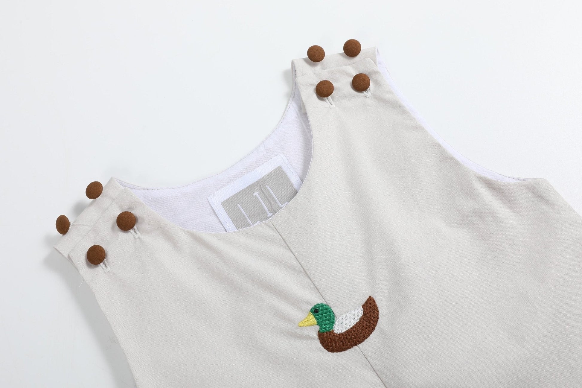 Adorable and practical, our Light Gray Mallard Duck Overalls are perfect for your little adventurer! Featuring a charming applique of a mallard duck, these overalls add a touch of countryside charm. Designed with coordinating buttons at the shoulders for adjustable sizing and convenient snaps for easy diaper changes, they ensure comfort and ease for infants, babies, and toddlers up to 2T. Perfect for fall outings, outdoor play, and everyday wear!