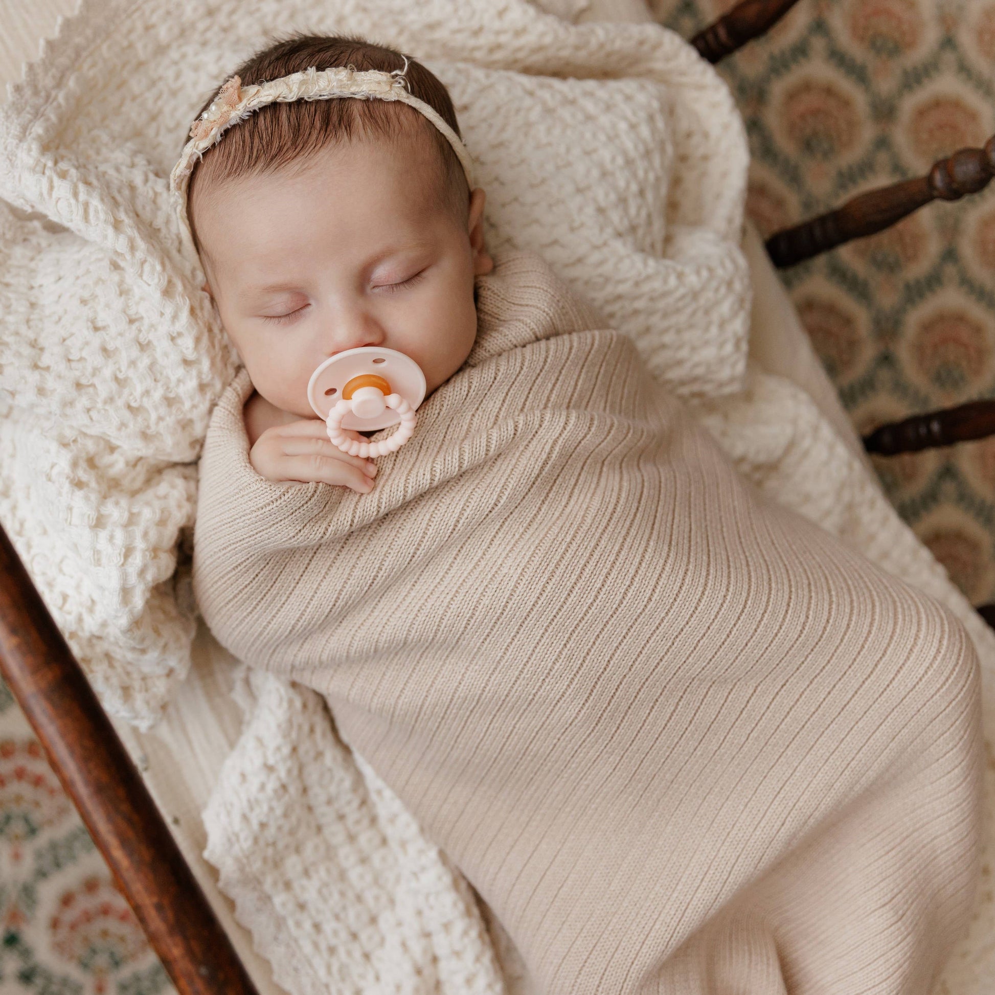 Our organic ribbed stretchy blanket is made from the finest luxury organic cotton, providing a soft, breathable touch. The ribbed texture adds gentle flexibility, making it ideal for a secure and cozy swaddle.