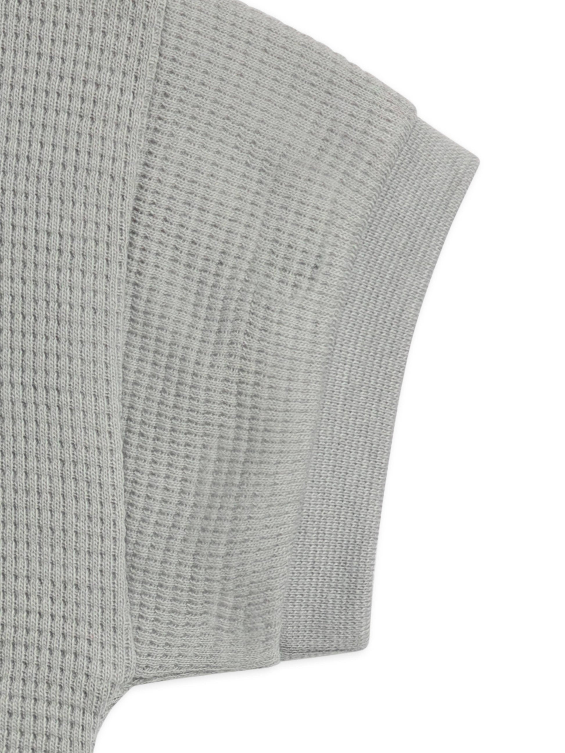 The Ali Waffle Tee in Mist is a cozy, stretchy tee made from 100% organic cotton waffle fabric. Its soft ribbed edges keep it comfy and snug all day long. Perfect for playtime or naps, it’s easy to care for and pairs great with matching shorts for a cute, comfy look.