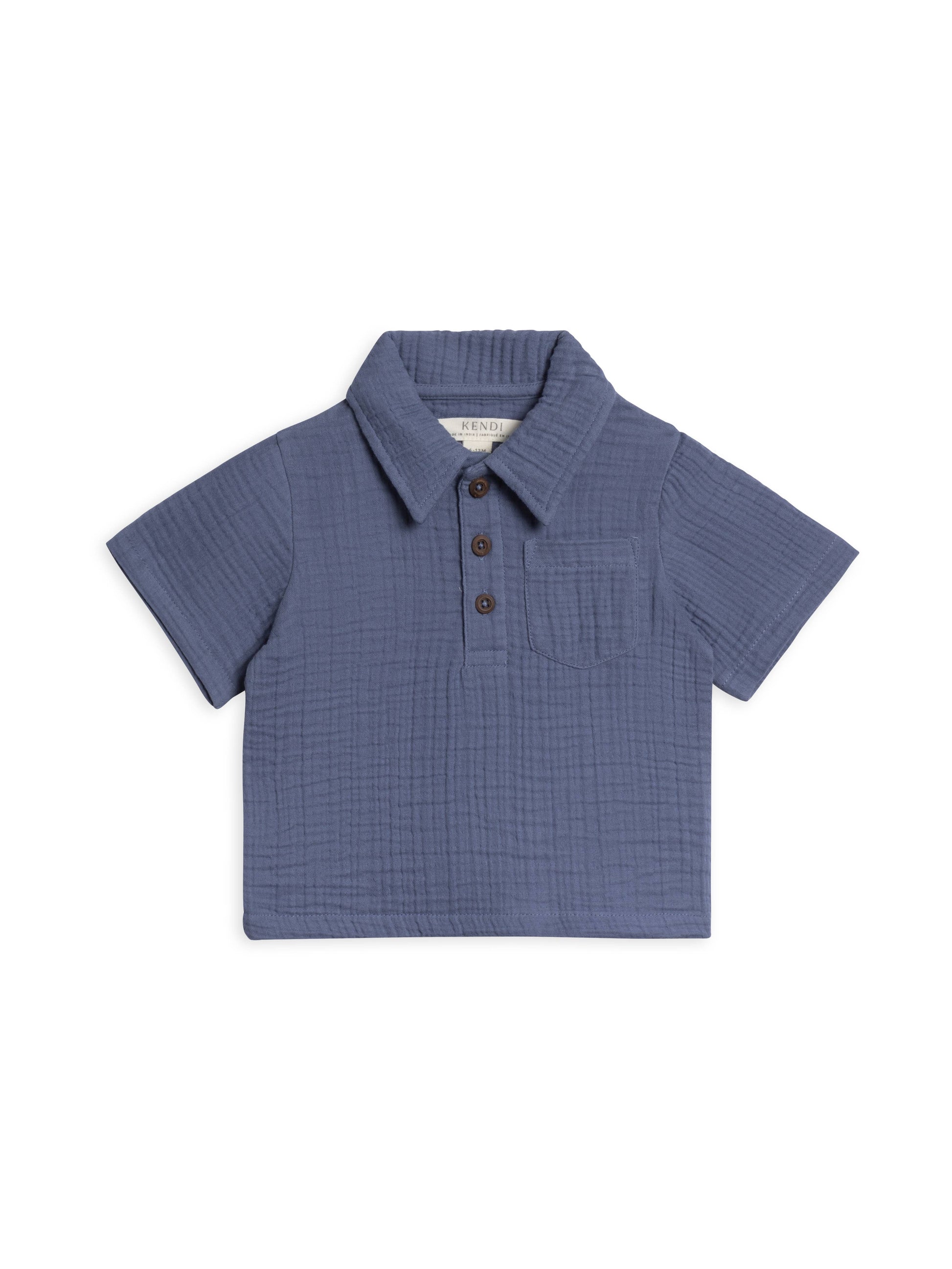 Organic Ezra Muslin Short Sleeve Polo - Marino