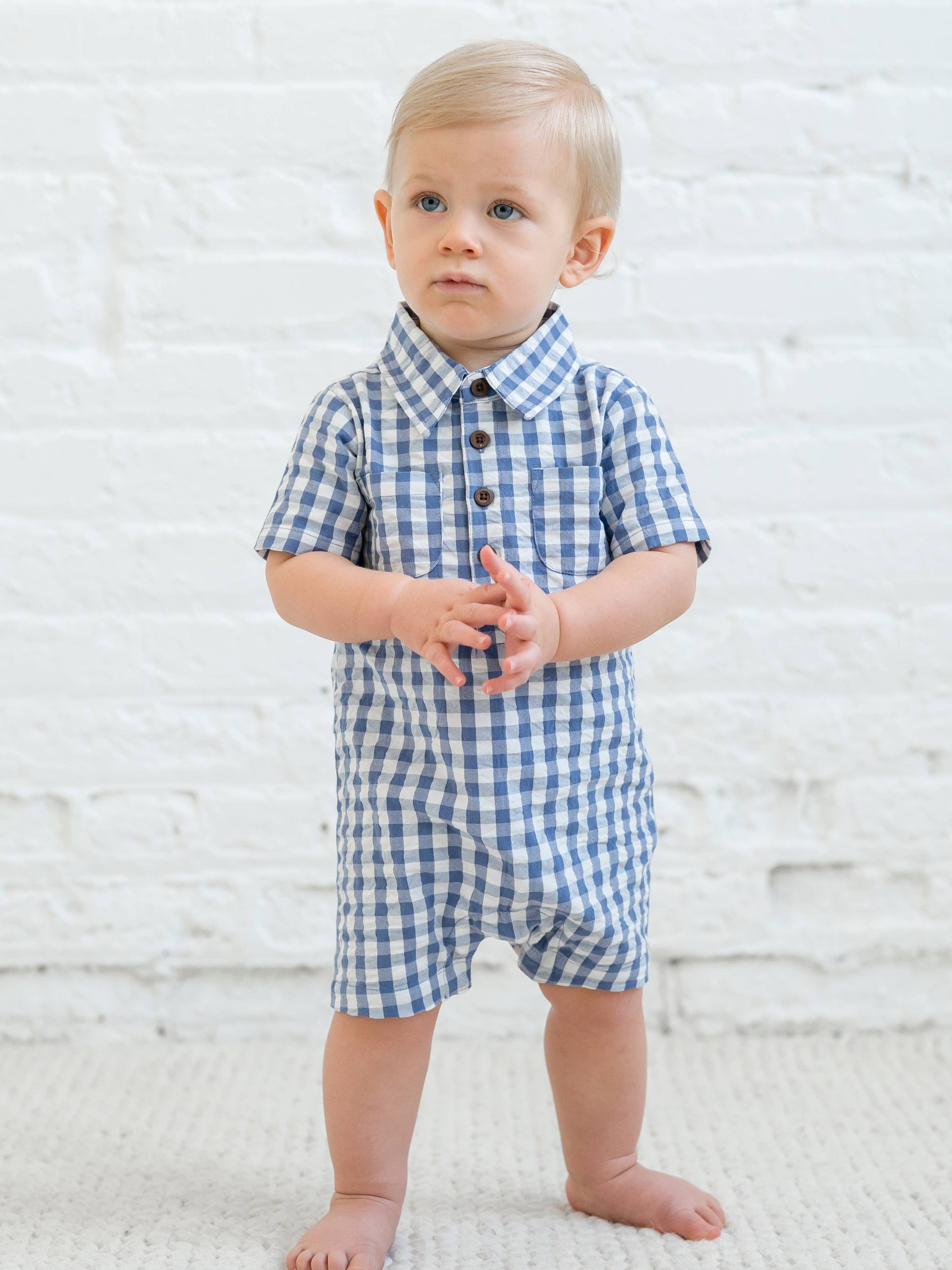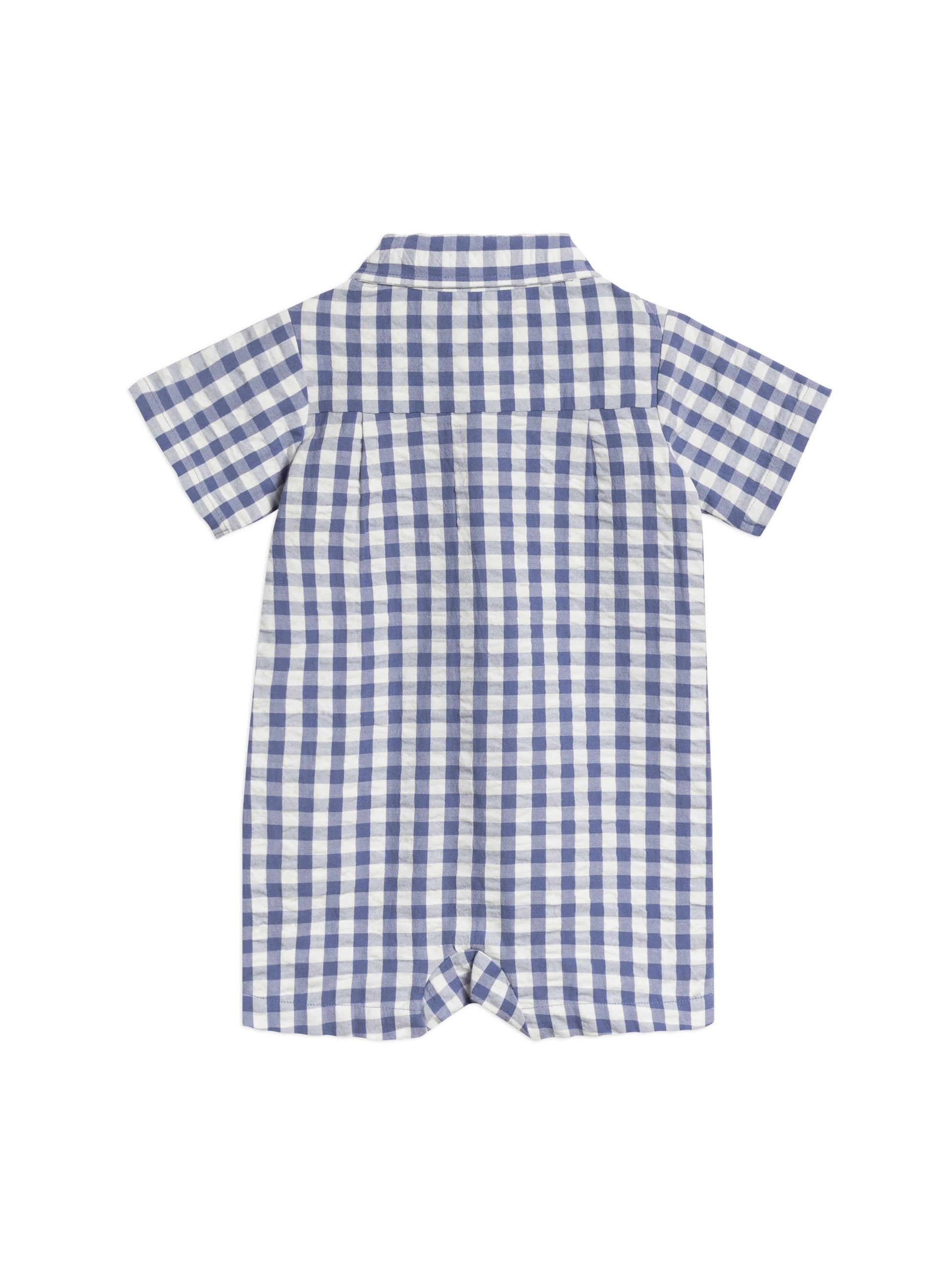 Organic Mato Seersucker Collared Romper - Marino Gingham