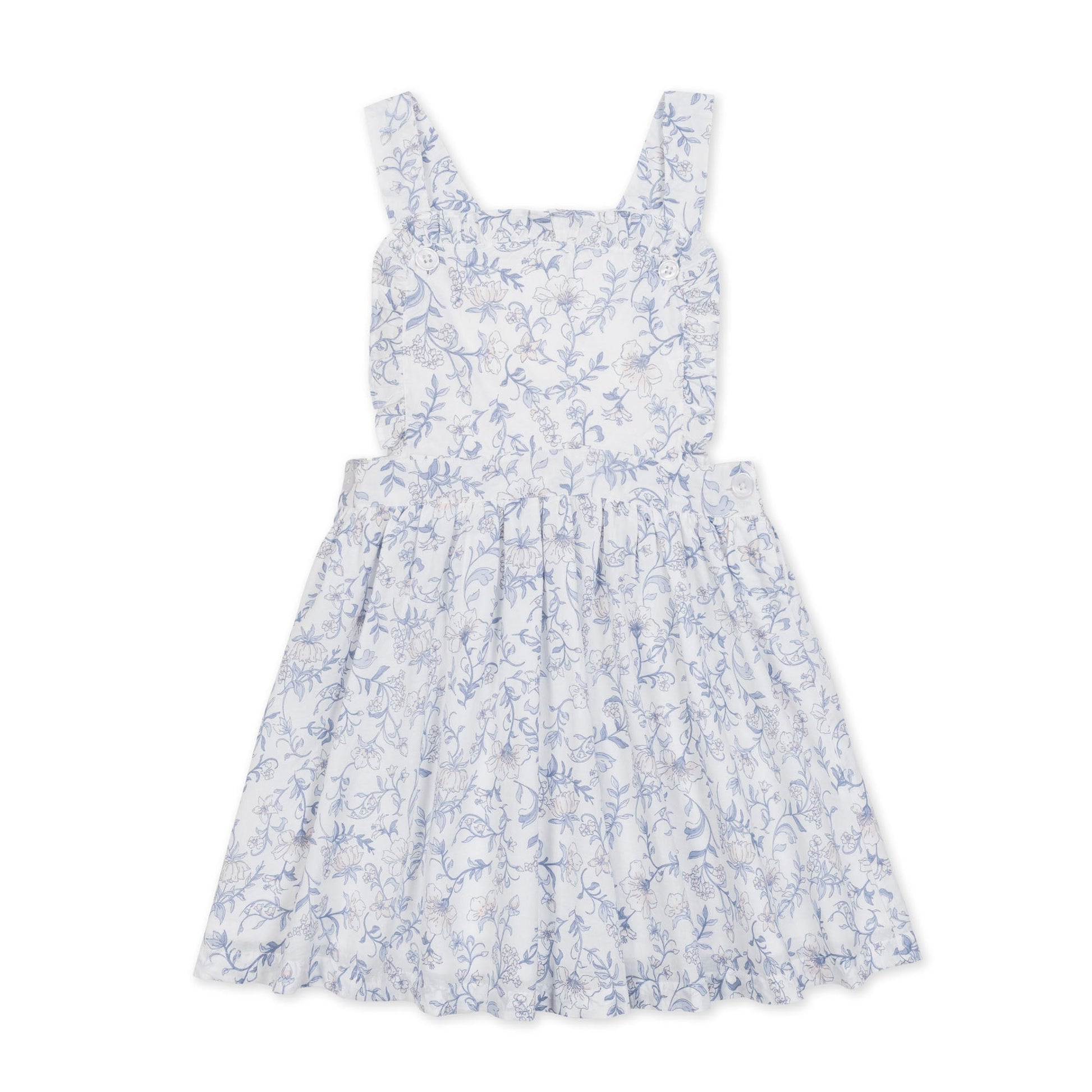 Our crossback apron dress is vintage-style personified. Features sweet ruffle details, adjustable buttons at the front, beautiful cross back straps, and an elastic waistband for easy dressing. Pairs perfectly with our collection of organic cotton tops and sweaters. Crafted and lined in soft organic cotton batiste for light and flowy comfort.