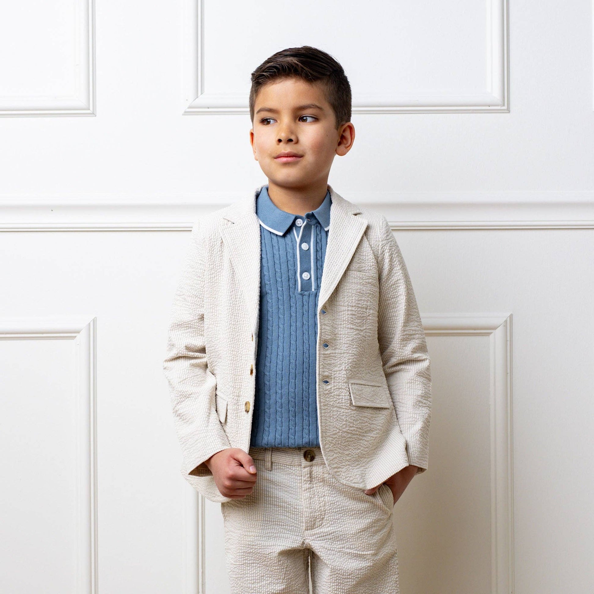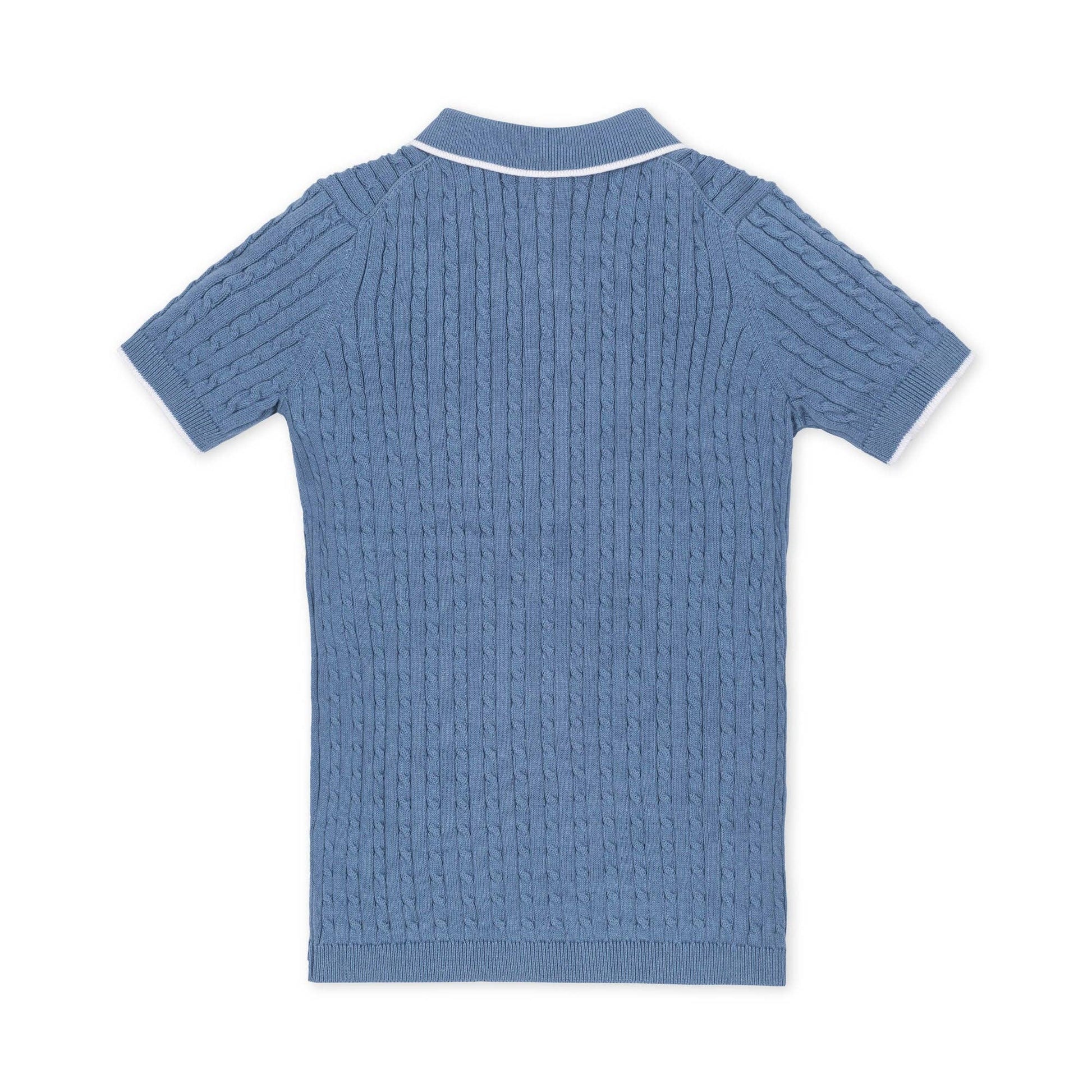 Our short sleeve sweater polo in soft organic cotton combines the polished look of a polo with the comfort of a sweater. Features an allover textured knit, matte button closure at the center front, and jersey stitch polo collar with contrast tipping. This handsome look is a sophisticated twist on a classic.