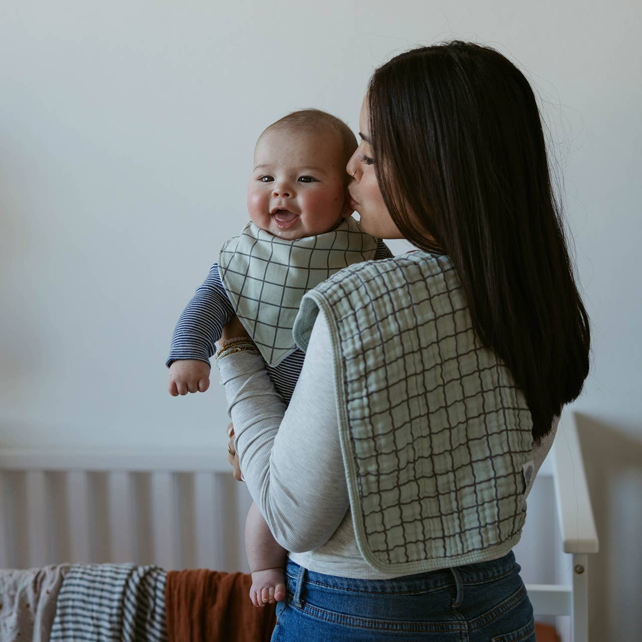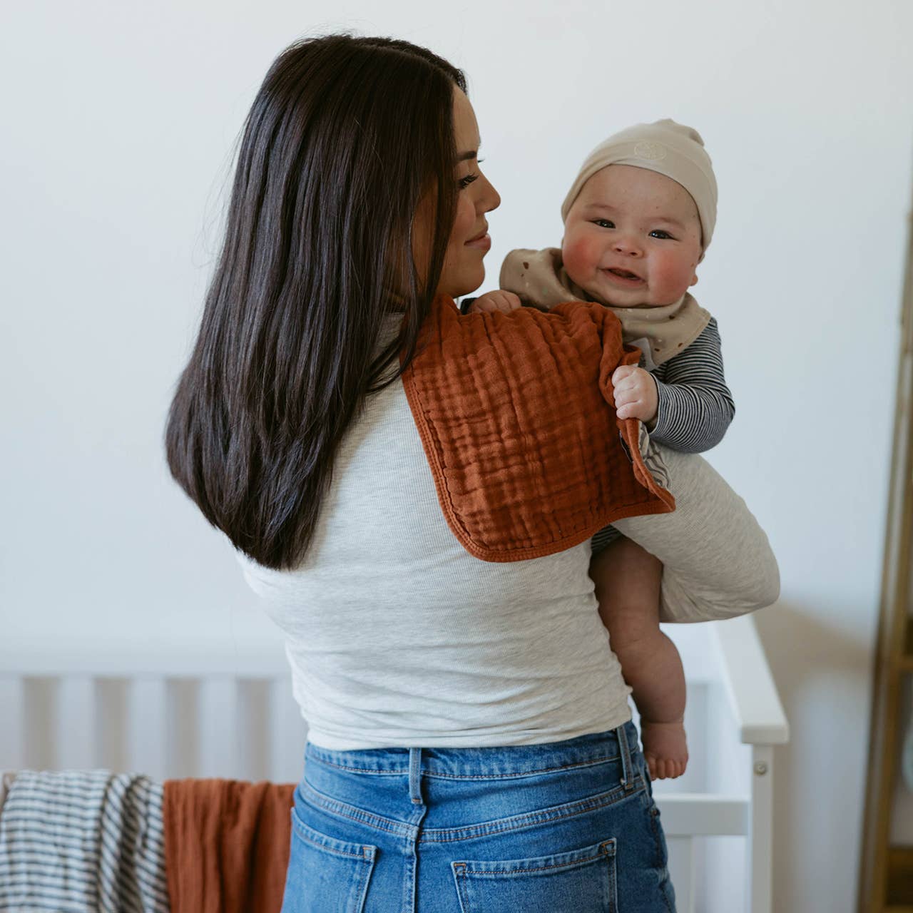 Made with 100% Muslin Cotton, our burp cloths are soft and gentle on skin. At 11" x 20", they are practical for daily use. A 4-pack set ensures parents never run out.