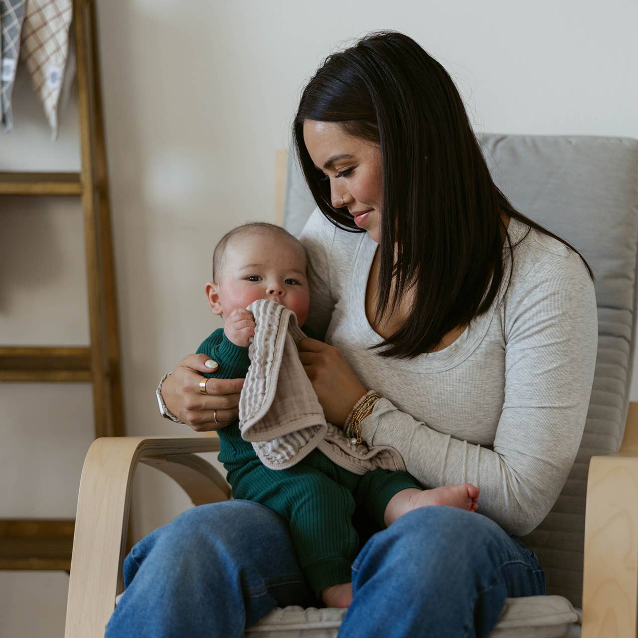 Our Pebble Burp Cloths save the day. Oversized, soft, and absorbent, they tackle messes. Dab away milk and spit-up, wipe post-dinner messes, and soak up spills. Toss in the wash afterward for hands-free cleanup!