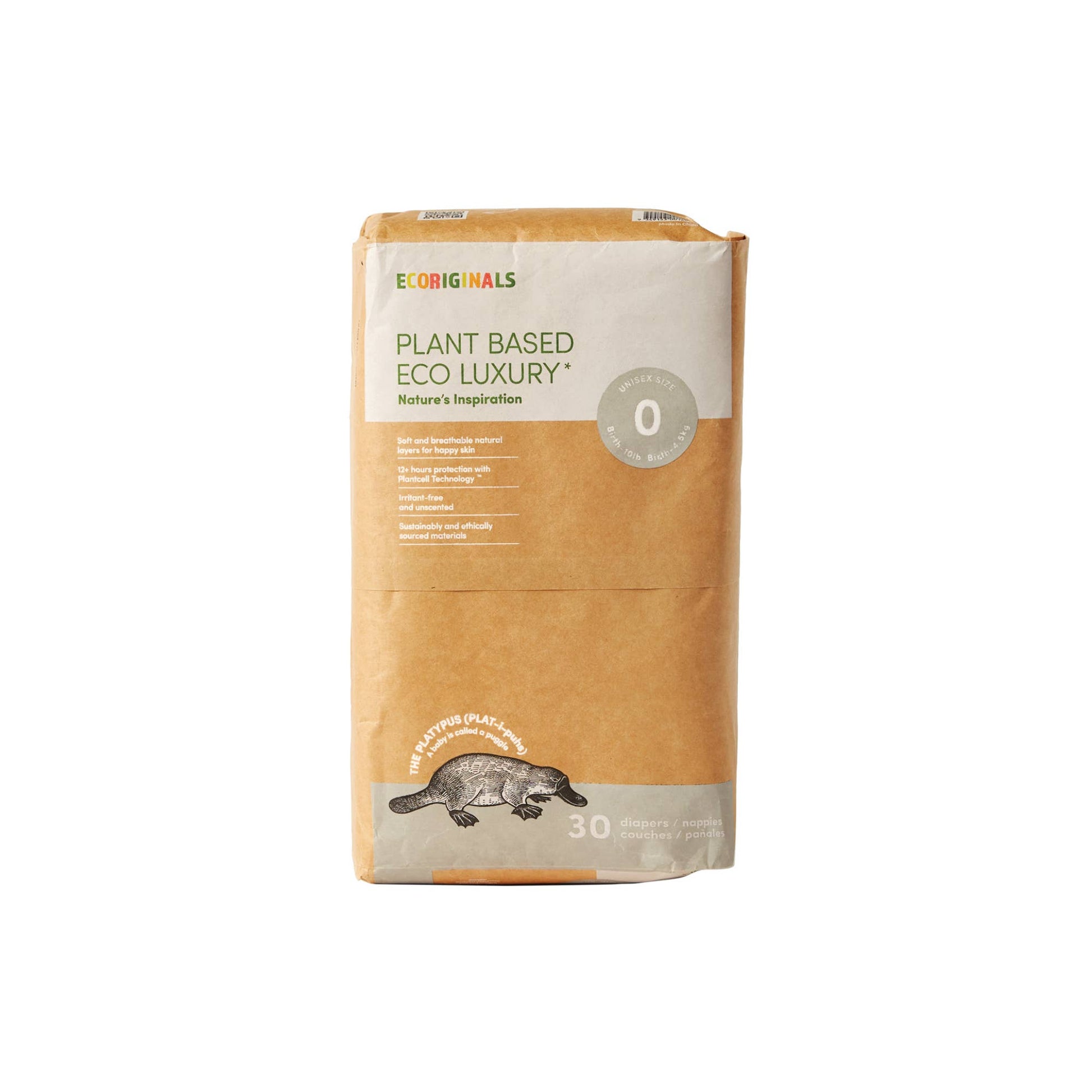 Diapers are presented in paper compostable packaging, all carbon is offset and each order contributes to re-forestation projects, the plastic impact with Ecoriginals is zero.