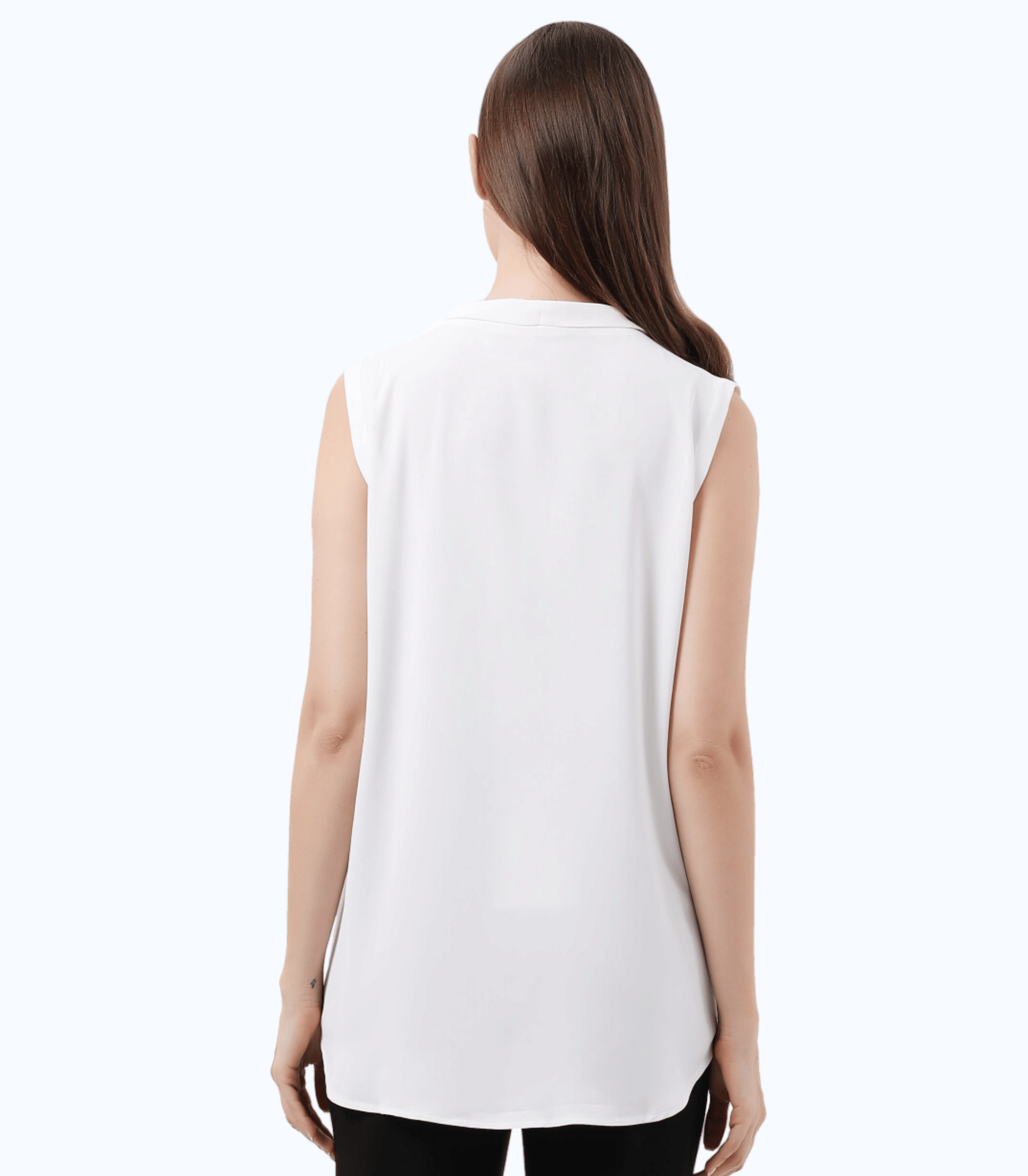 A pleat front maternity blouse is a stylish and comfortable choice for pregnant women. This blouse is made from pearl chiffon that is lightweight and moves with the body, allowing for ease of movement during pregnancy. This blouse can be dressed up with slacks and heels for a chic office look, or kept casual with jeans and sneakers. It is a versatile and practical choice for any stage of pregnancy and can be worn after pregnancy as well.