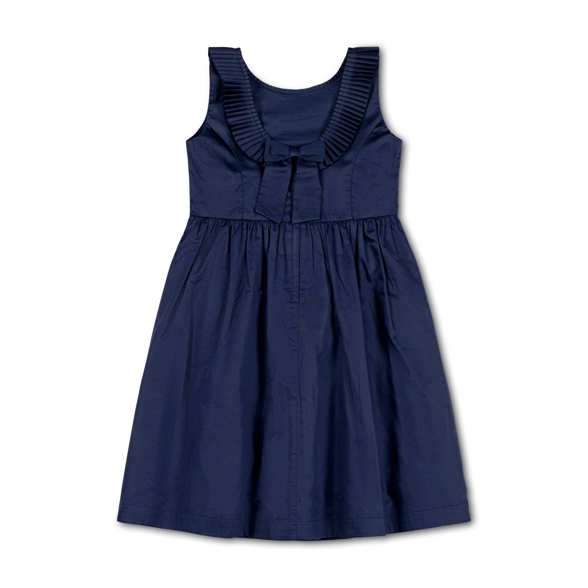 Can you say stunning? Jumpstart the holiday season with one of our favorite party dresses for girl. Cut from soft organic cotton sateen, our refined dress features a beautiful pleated collar, full skirt, bow detail at the back scoop neck, and zipper closure down the center back for easy dressing. Fully lined.