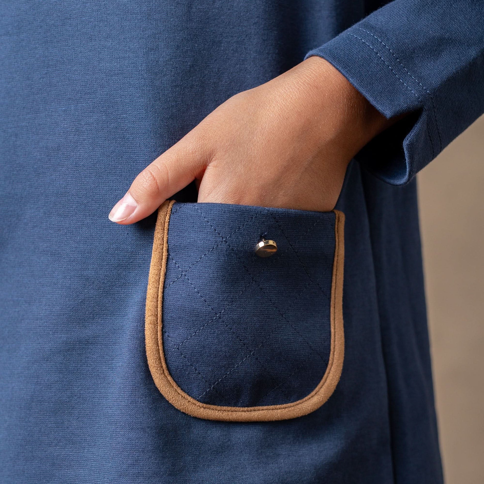 Perfect for picture time or play time, the thick knit fabric has plenty of stretch for comfort and the suede details at the elbows and pockets add an equestrian touch. Gold buttons at the front add just the right amount of sparkle.