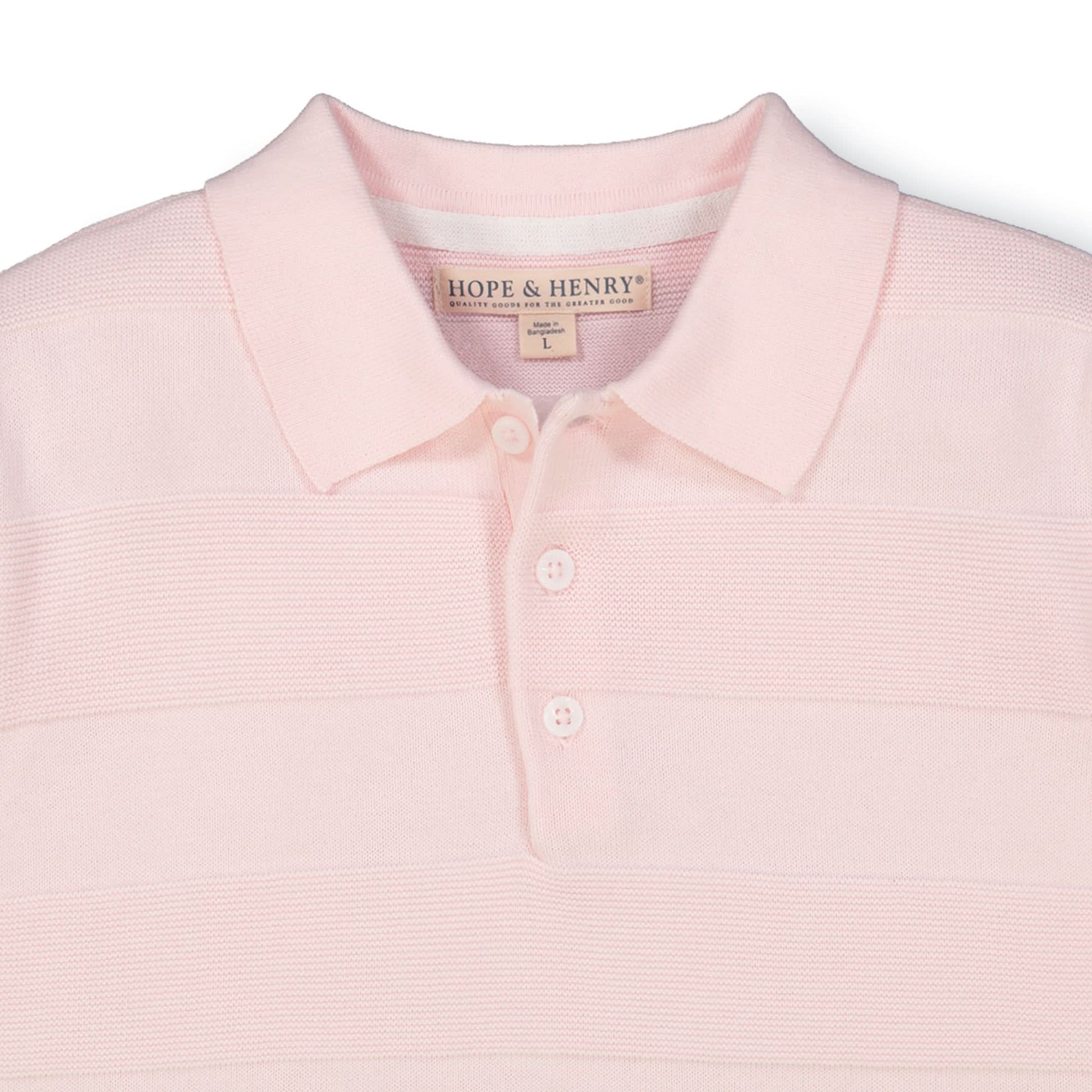 Our short sleeve sweater polo in soft organic cotton combines the polished look of a polo with the coziness of a sweater for the ultimate in comfort and style. Features an allover textured knit, matte button closure at the center front, and jersey stitch polo collar with contrast tipping. A sophisticated twist on a classic!
