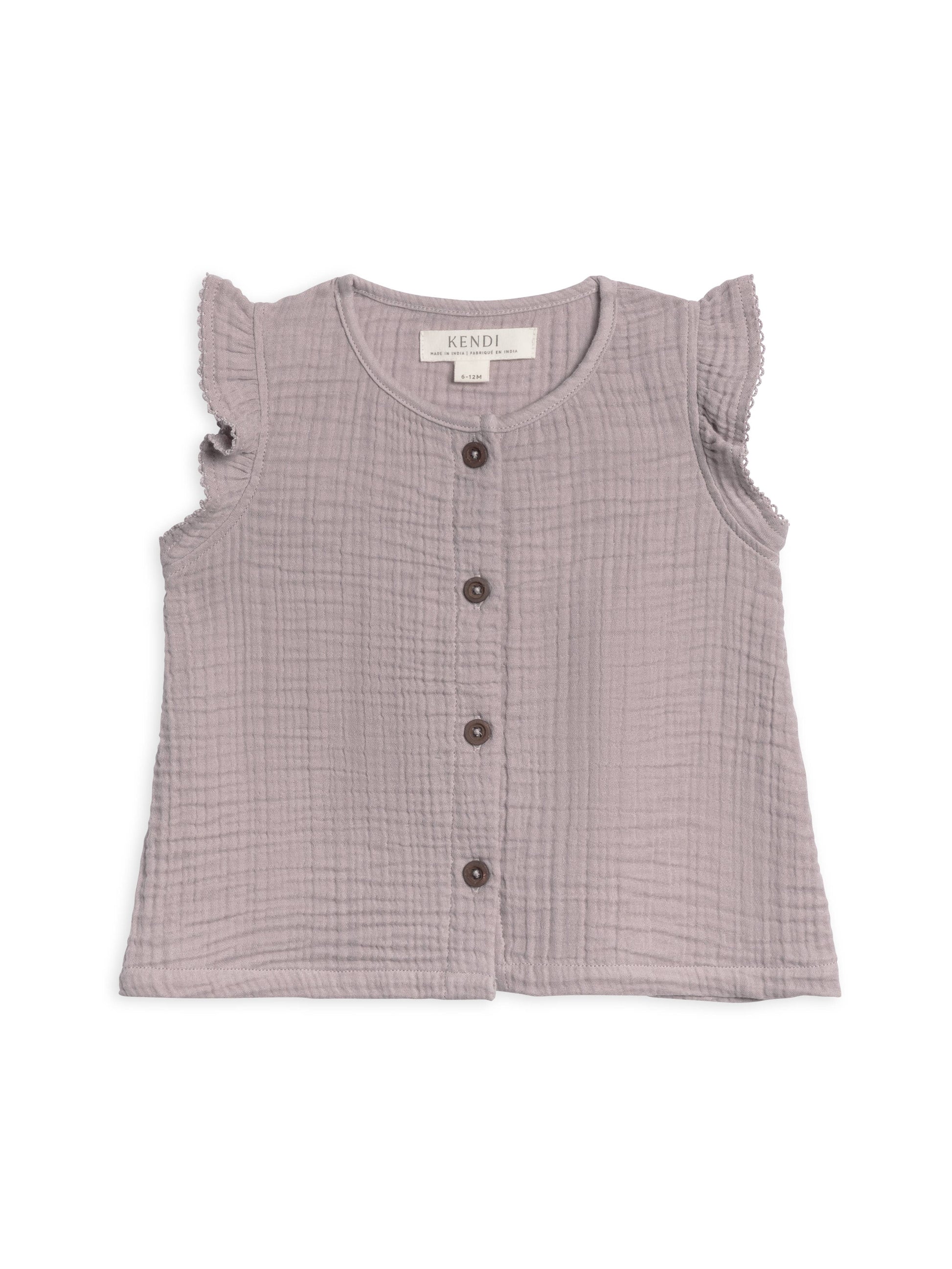 Tessa Muslin Button Front Ruffle Sleeve Top - Lilla