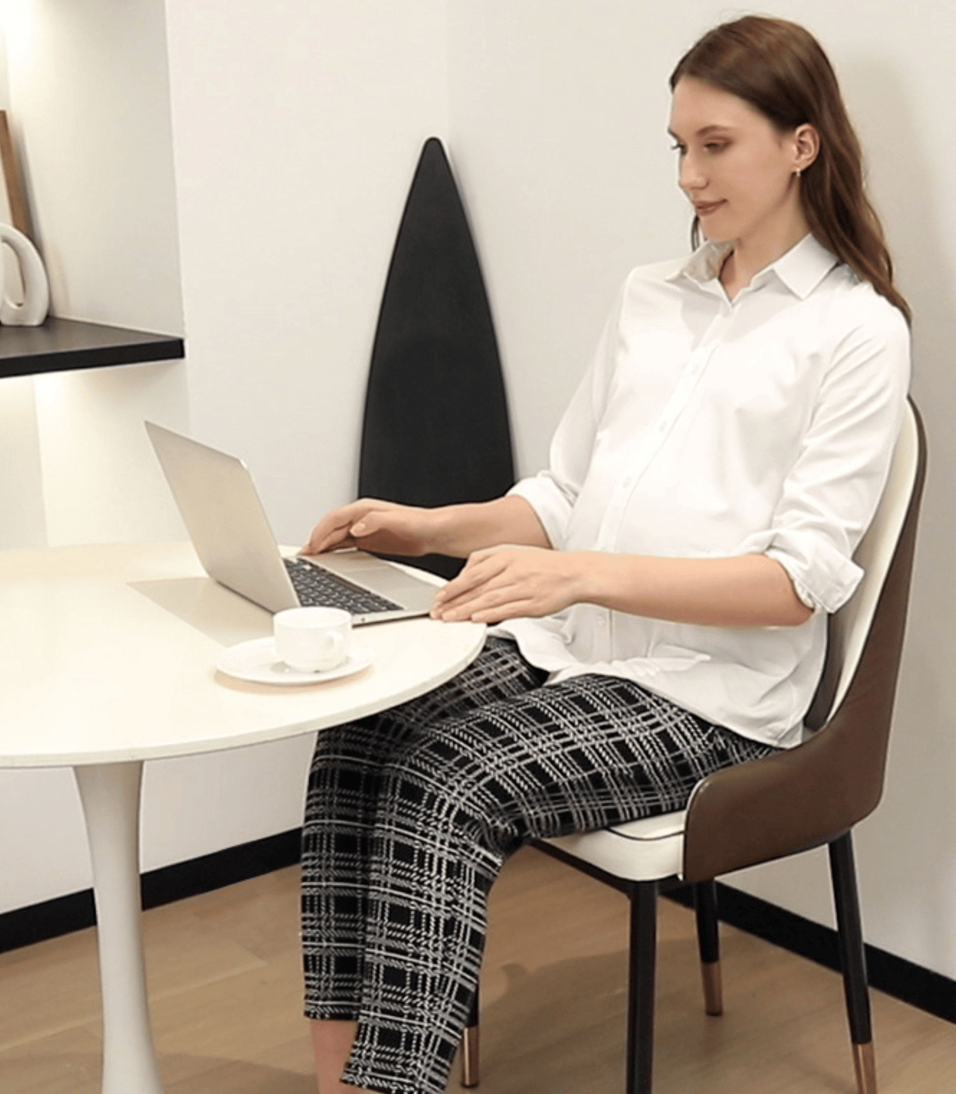 Maternity trouser pants are a comfortable and stylish option for pregnant women. These pants are designed to accommodate a growing belly, with a high waistband that sits above the belly and a comfortable, and a relaxed fit through the hips and thighs. The waistband is stretchy and elasticized to provide support and comfort throughout pregnancy as your bump grows. A favorite of our working moms' these pants are perfect for the hybrid mommy-office life as they can be dressed up with a blouse and heels for a chic office look, or kept casual with a t-shirt and sneakers. If you're looking for maternity pants for work, these are a great option. They are a versatile and practical choice for any stage of pregnancy and can be worn after pregnancy as well. Ultra big pockets will come in handy for your busy life.