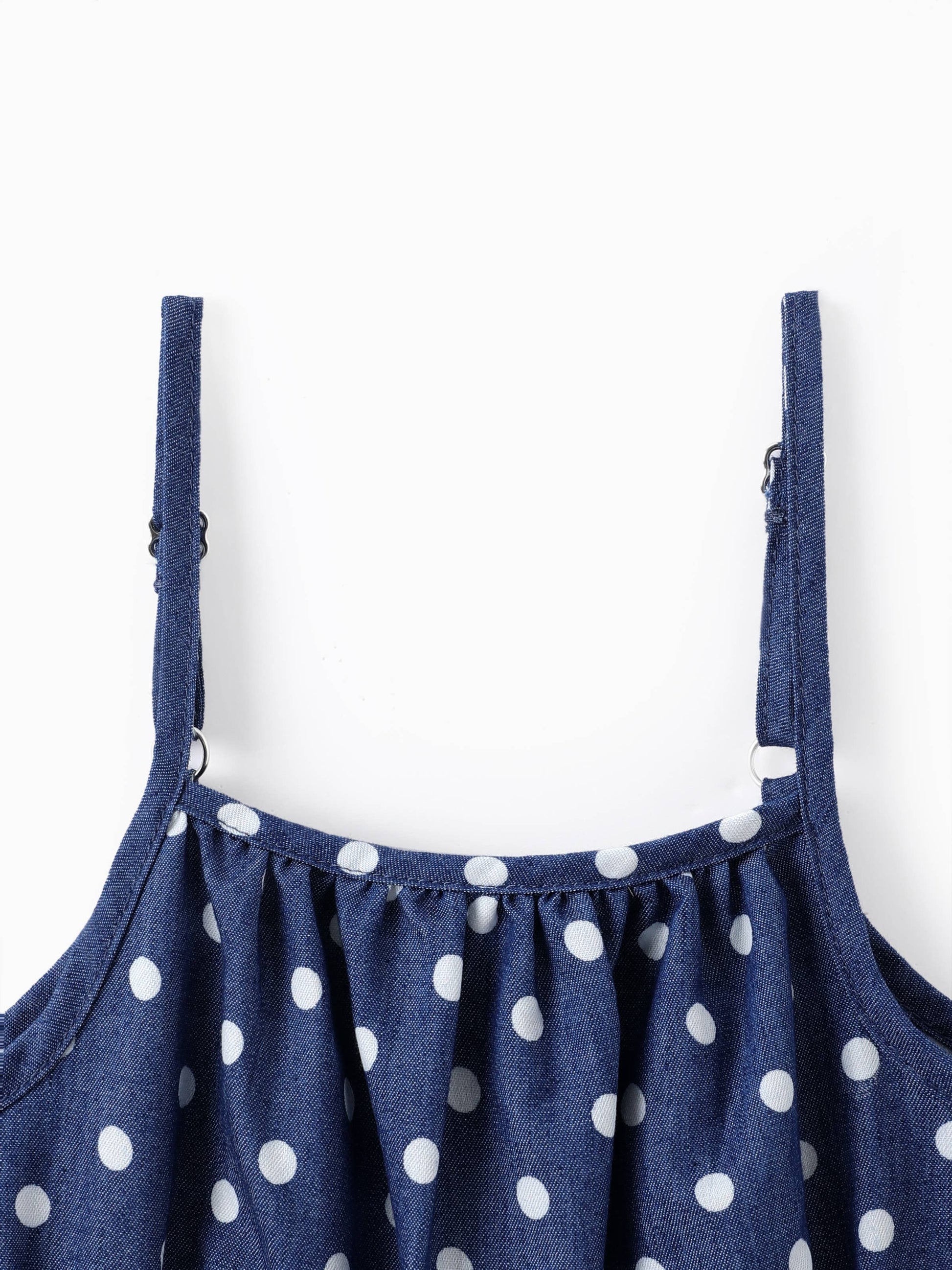 Toddler Girl Polka dots Bowknot Design Denim Cami Jumpsuits
