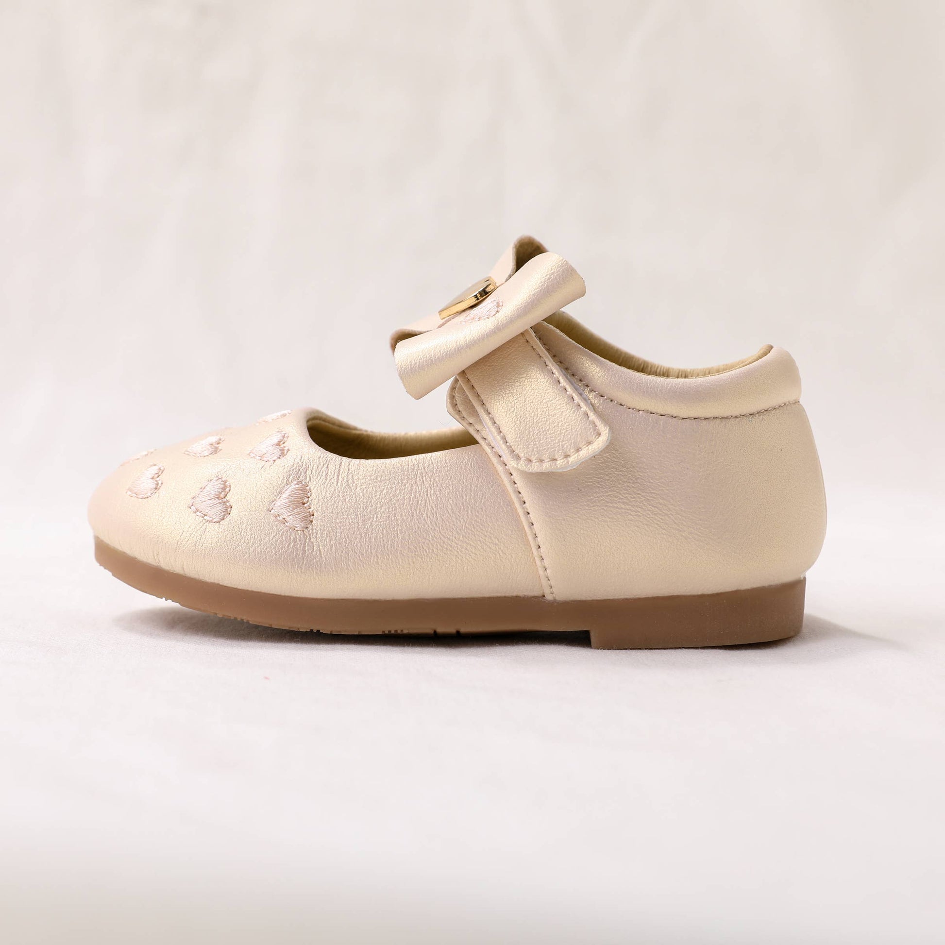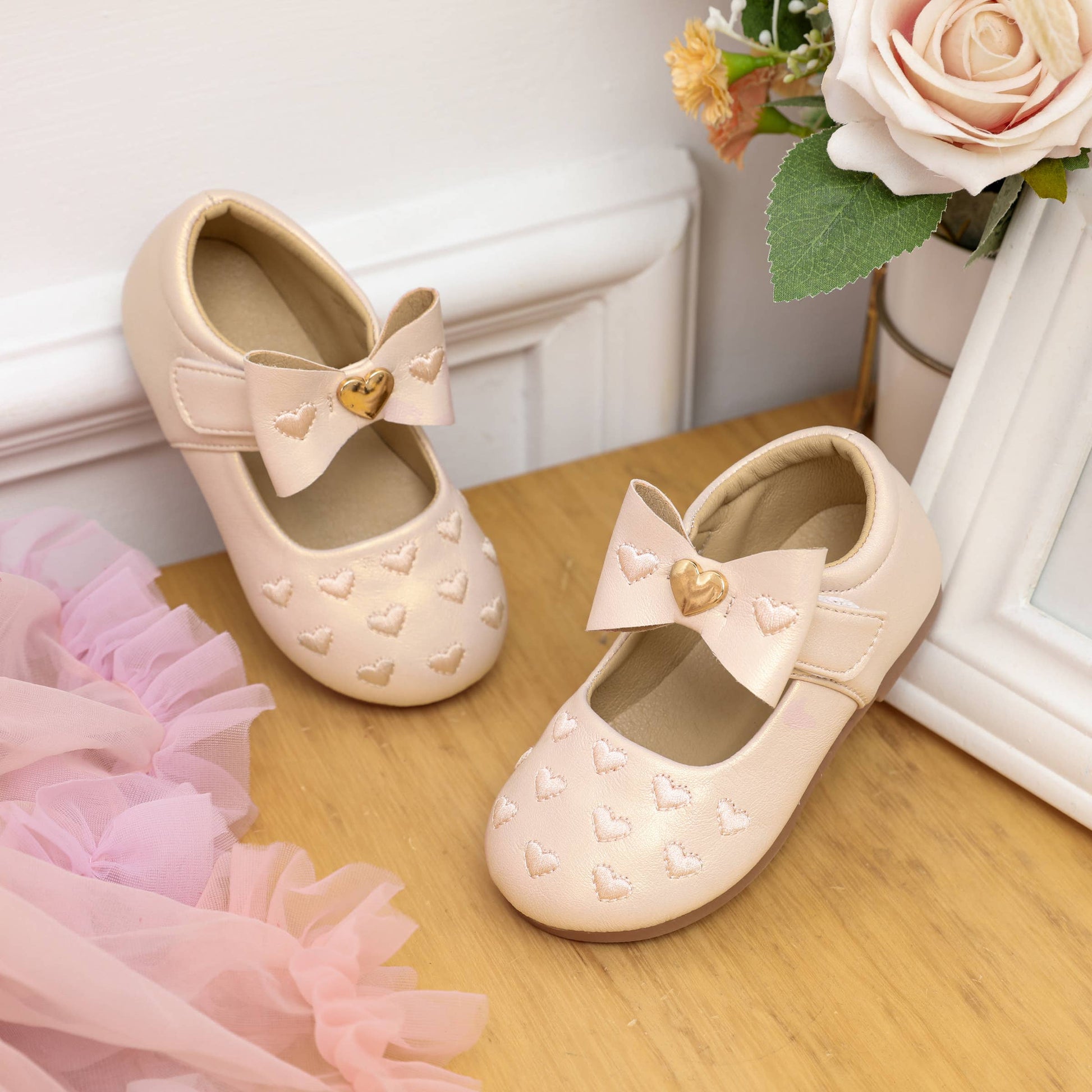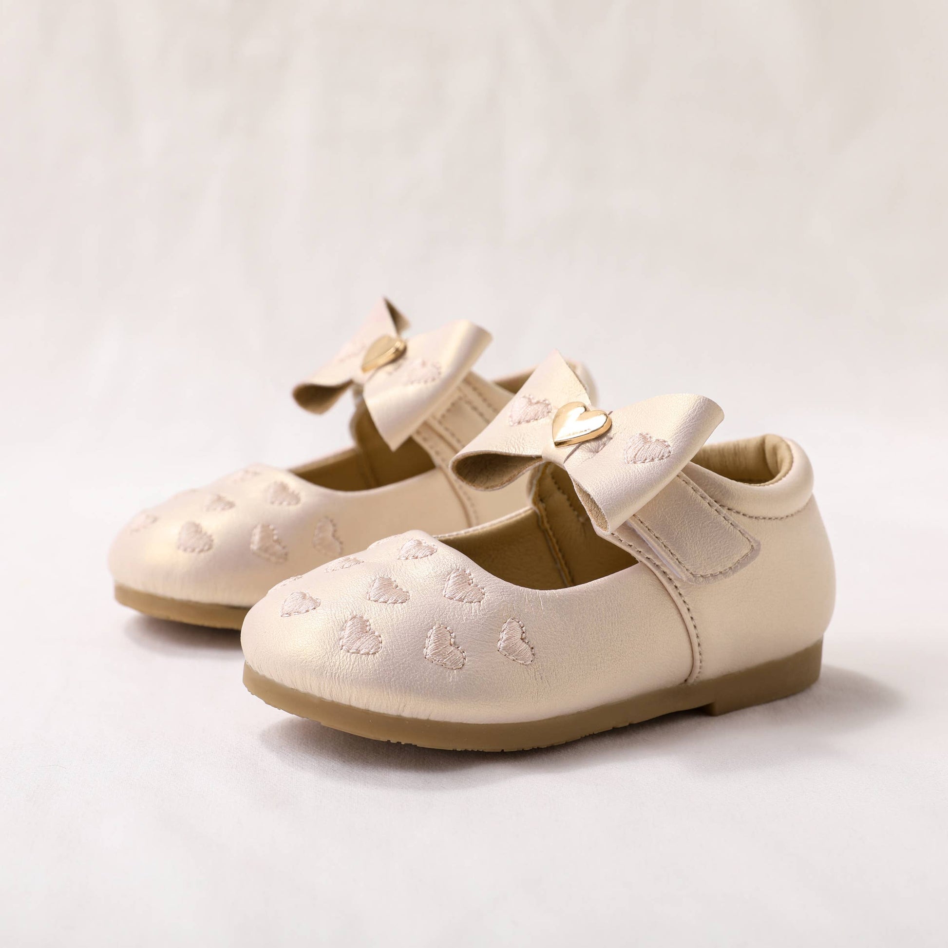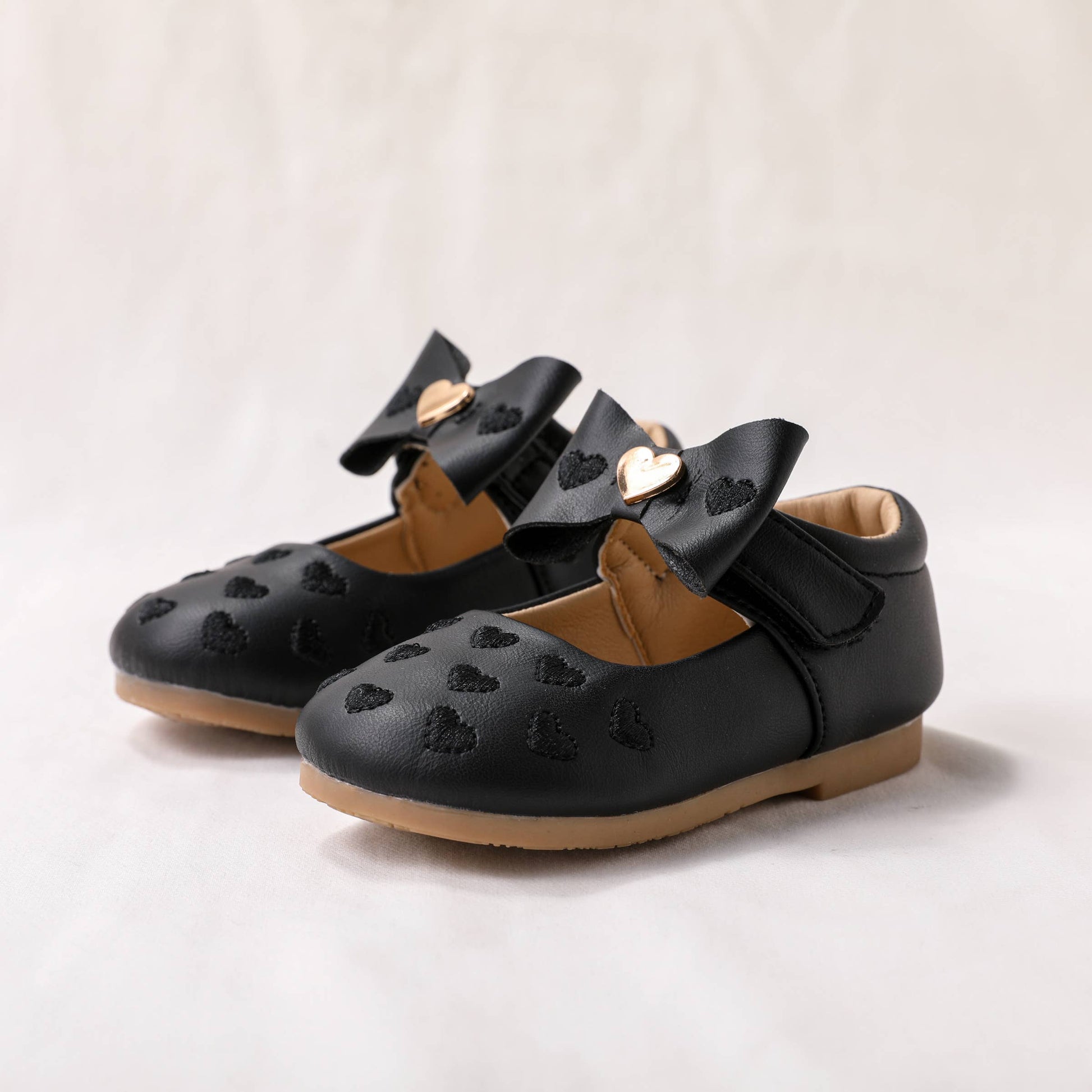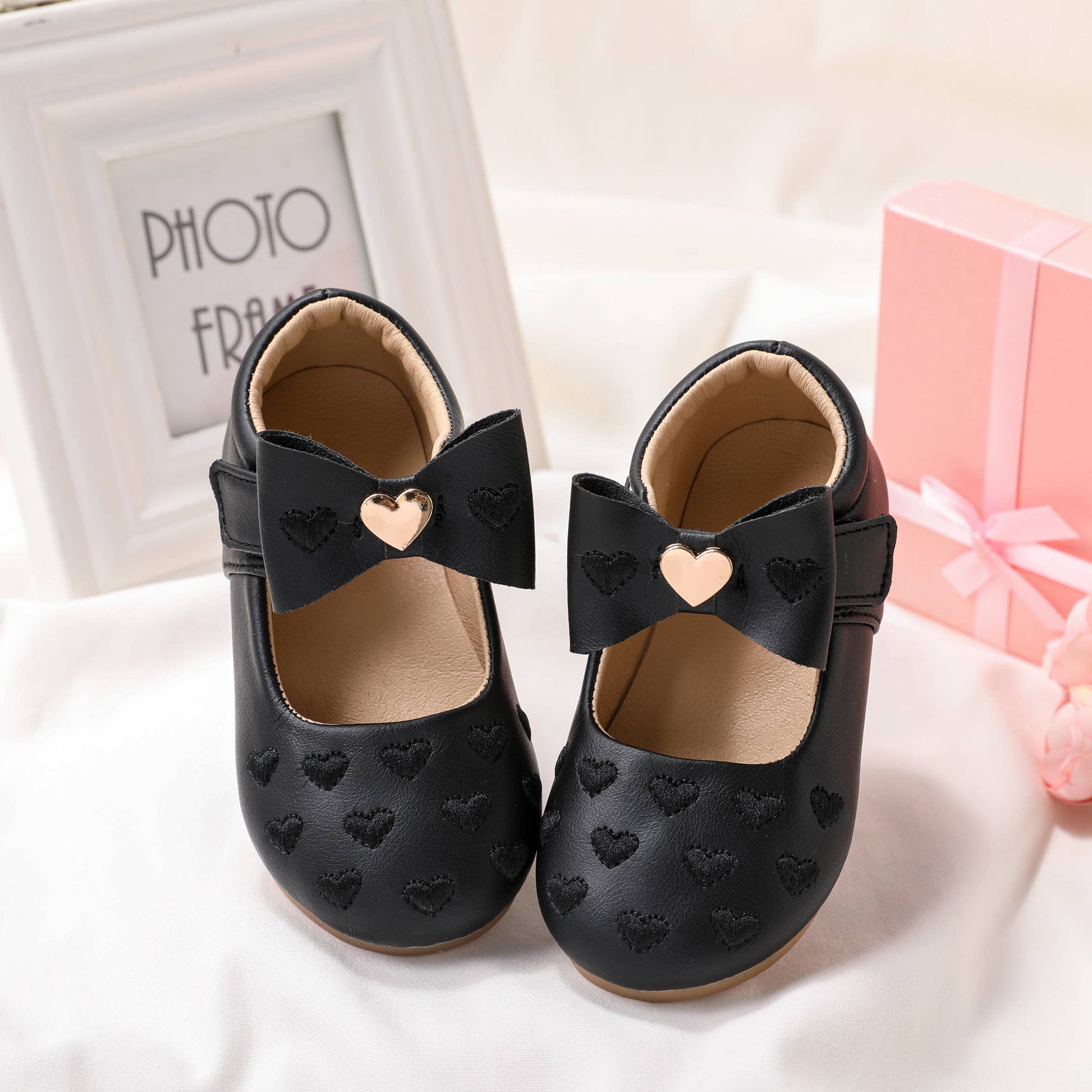 Toddler/Kids Girl Heart-shaped Embroidered Bow Leather Shoes