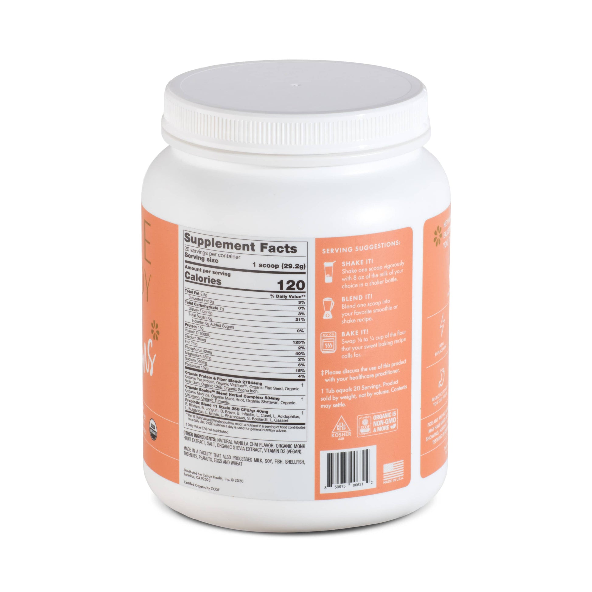 19g plant-based protein, 1 net carbs/0 sugar, 1000 i us vitamin d, prebiotics + custom 11-strain probiotic blend, includes all essential amino acids.