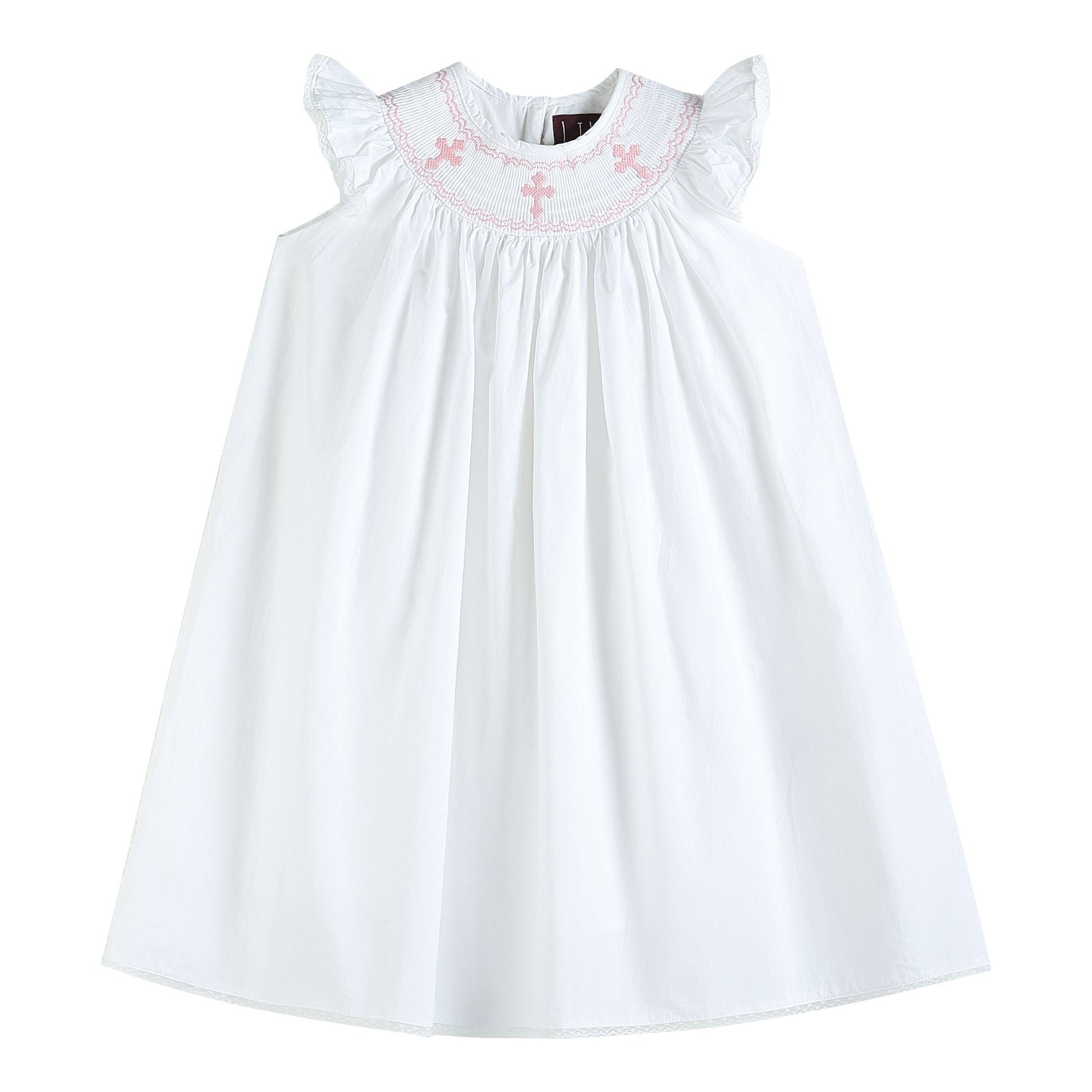 Absolutely Adorable! This charming dress is timelessly pretty. Made in a lightweight cotton fabric that will keep her cool and comfortable as she plays. The classic styling is updated with cheerful colors and adorable details. Perfect for Sunday service with grandma or for a fun day with Grandma.